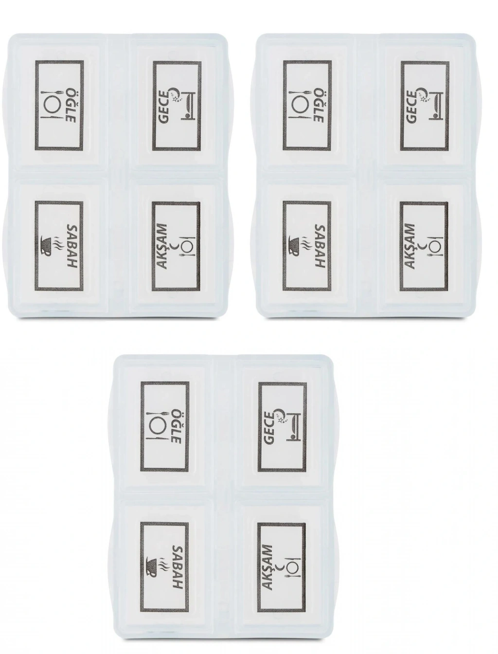 3 Adet 4 Bölmeli Günlük İlaç Saklama Kutusu