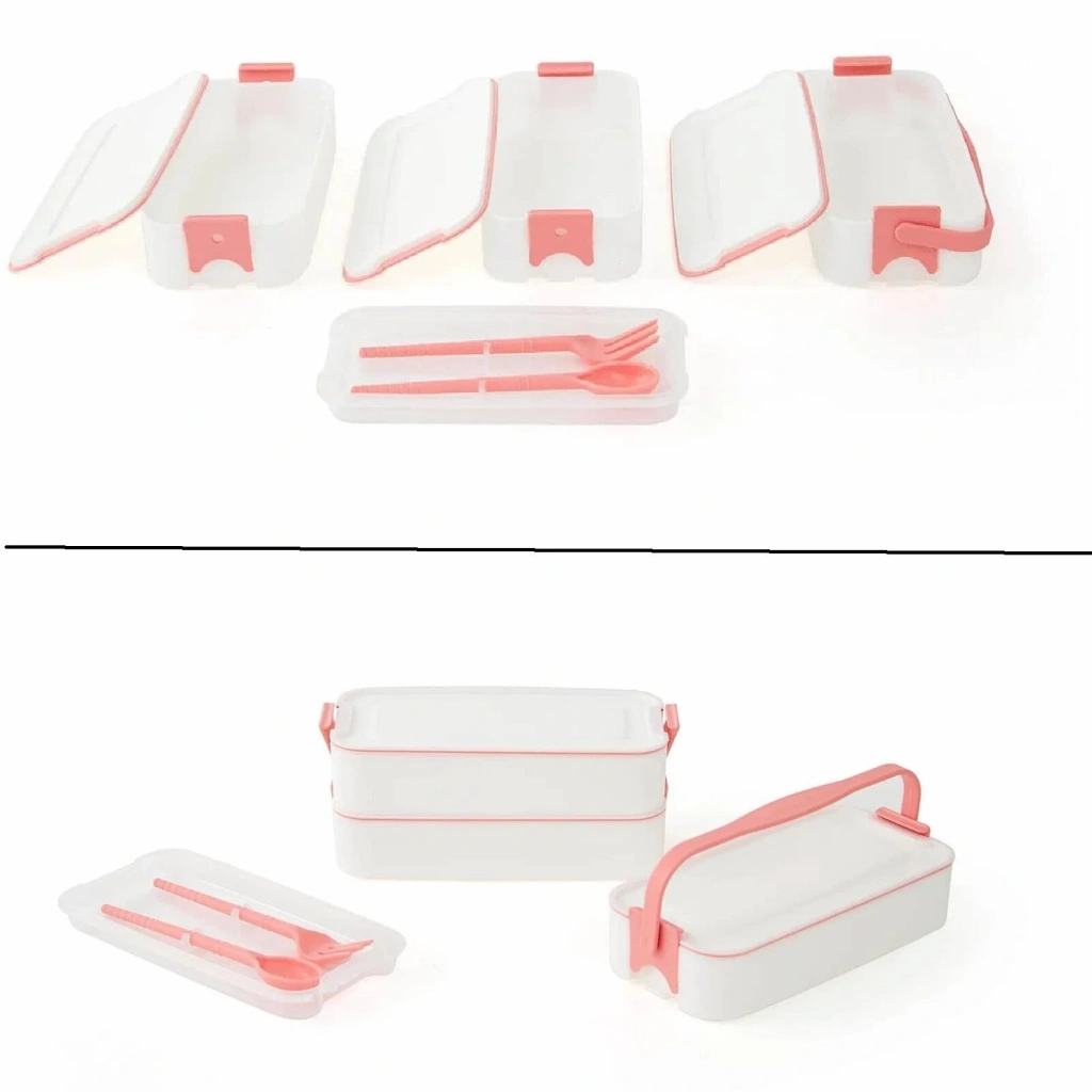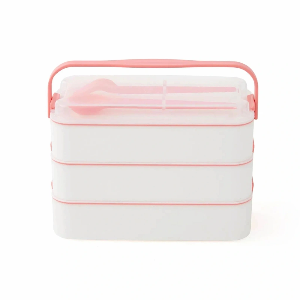 3 Katlı Kulplu Beslenme Kabı Diyet Sefer Tası Saklama Kabı Çatal Kaşıklı