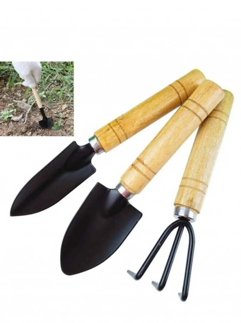 1 Adet 3 Parça Bitki Hobi Seti - Bahçe Saksı Sukulent Bakım Çapa-Tırmık-Kürek