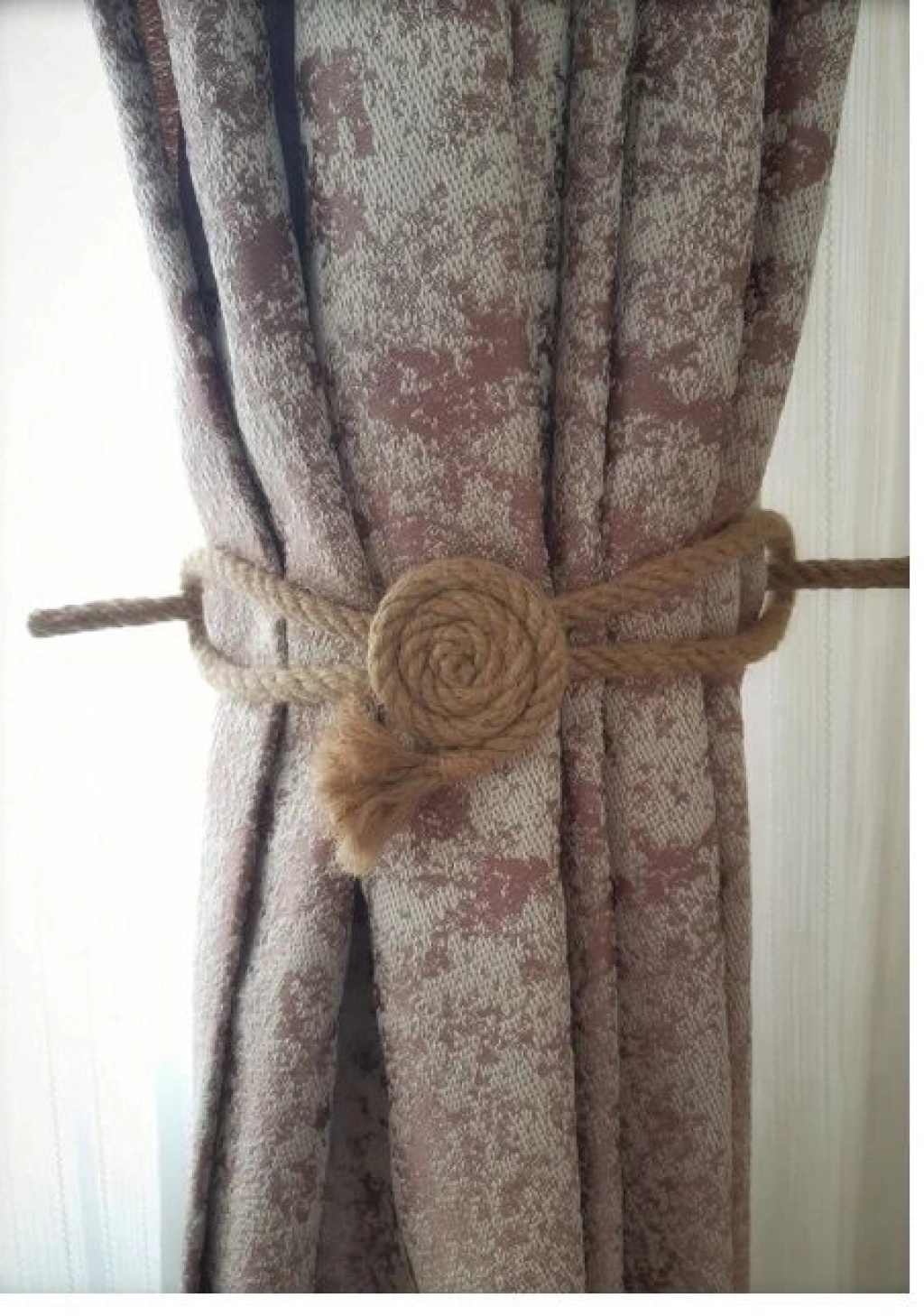 Spiral Jüt Halat: Doğal ve rustik bir atmosfer yaratmak isteyenler için spiral jüt halatlar ideal. Perdelerinizi bu halatlarla bağlayarak hoş bir dokunuş ekleyin
