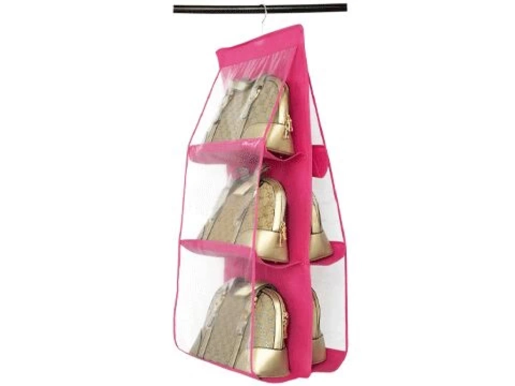 6 Gözlü Pratik Dolap İçi Çanta Askılığı/Organizer (Pembe)