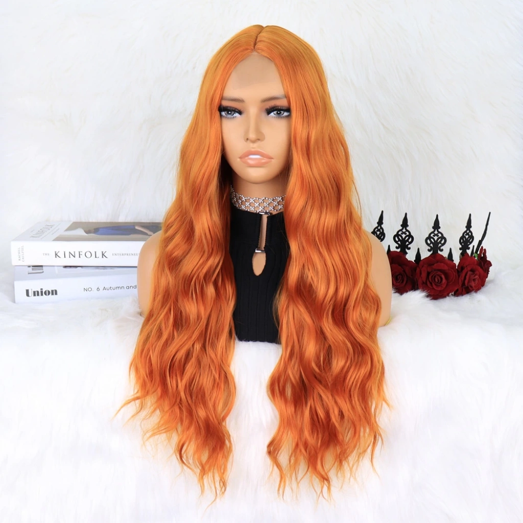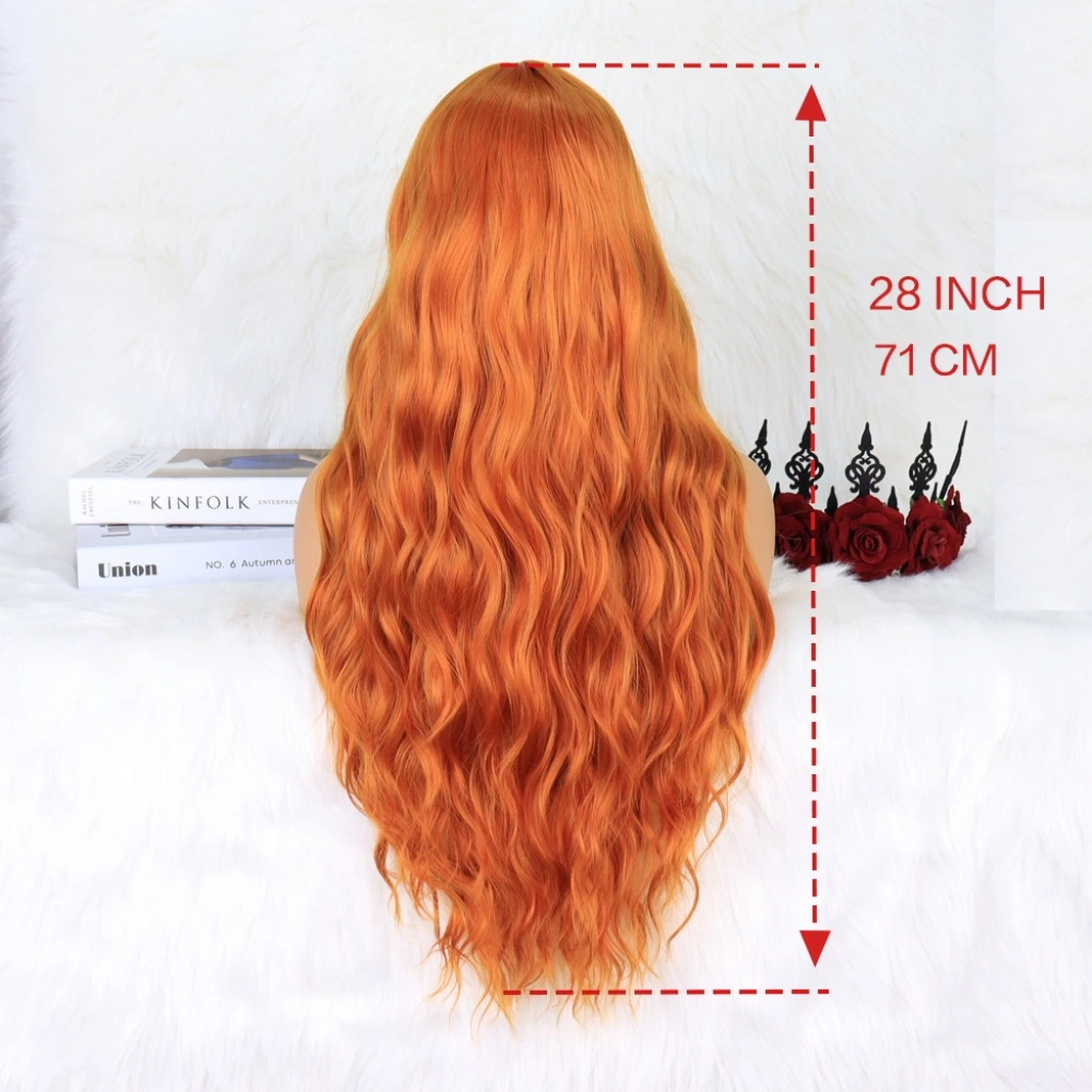 Uzun Kumral Balköpüğü Işıltılı Su Dalgalı Tül Peruk