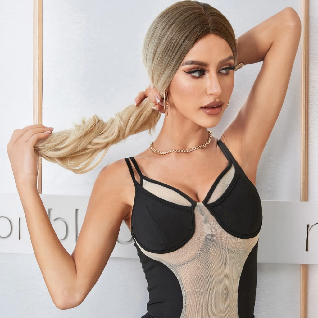 Açık Kumral Platin Ombreli Dalgalı Tül Peruk