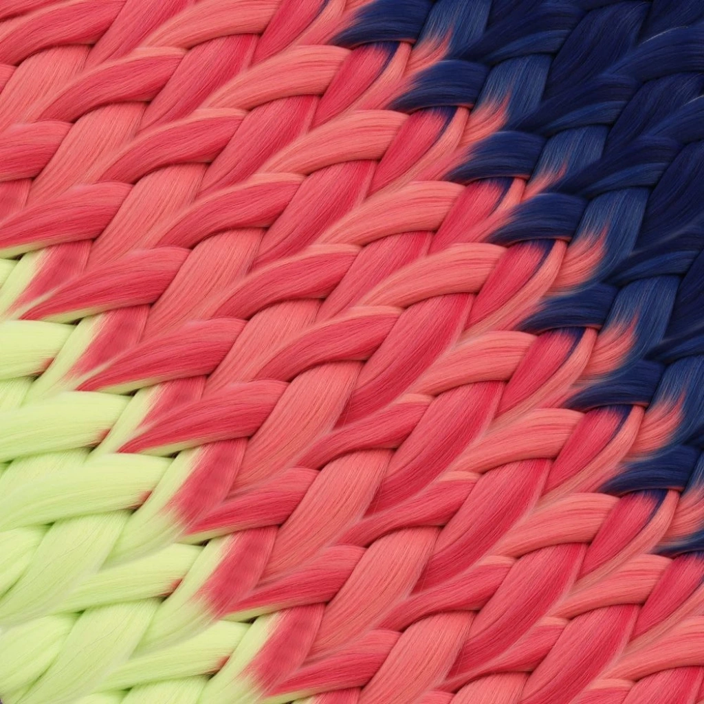 Afrika Örgüsü Ve Rasta İçin Sentetik Ombreli Saç - Mor / Pembe / Açık Fıstık Yeşili