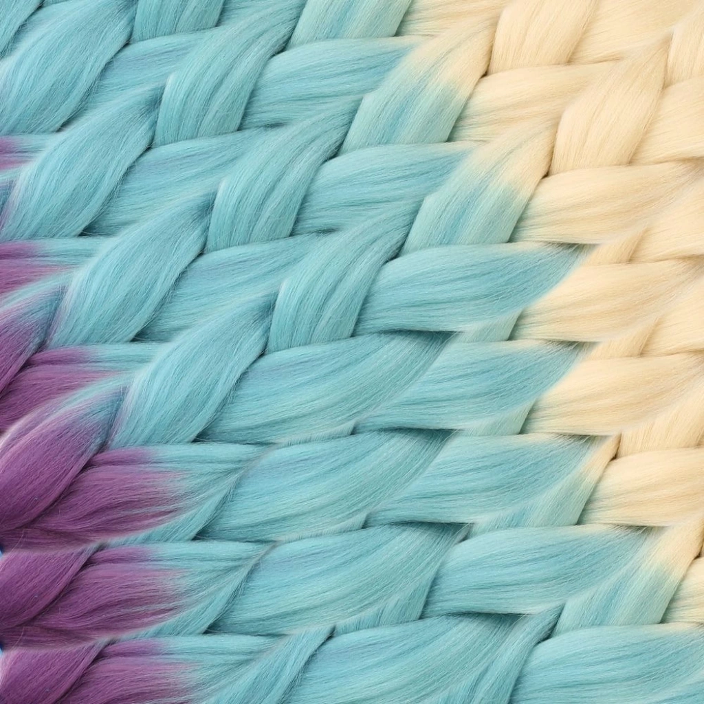 Afrika Örgüsü Ve Rasta İçin Sentetik Ombreli Saç - Platin / Turkuaz Mavi / Açık Mor