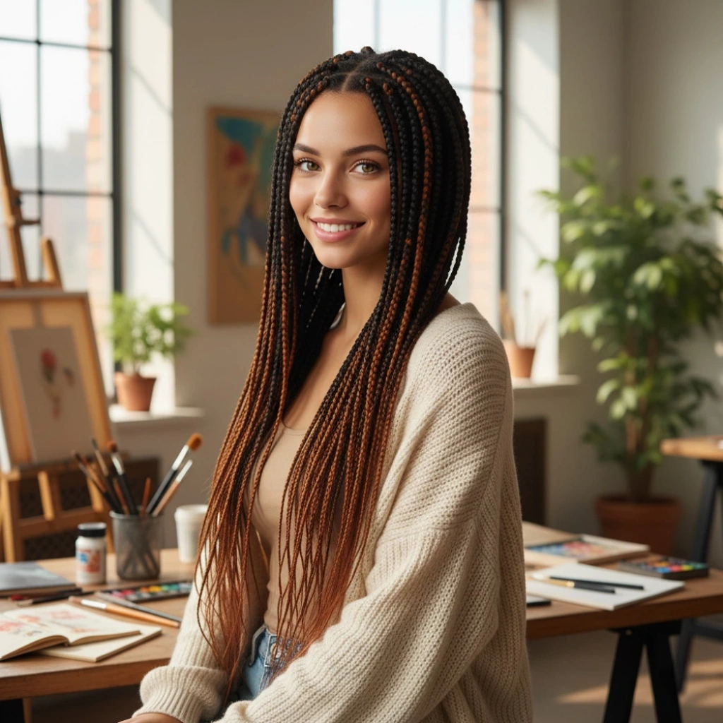 Afrika Örgüsü Ve Rasta İçin Sentetik Ombreli Saç - Siyah / Bakır