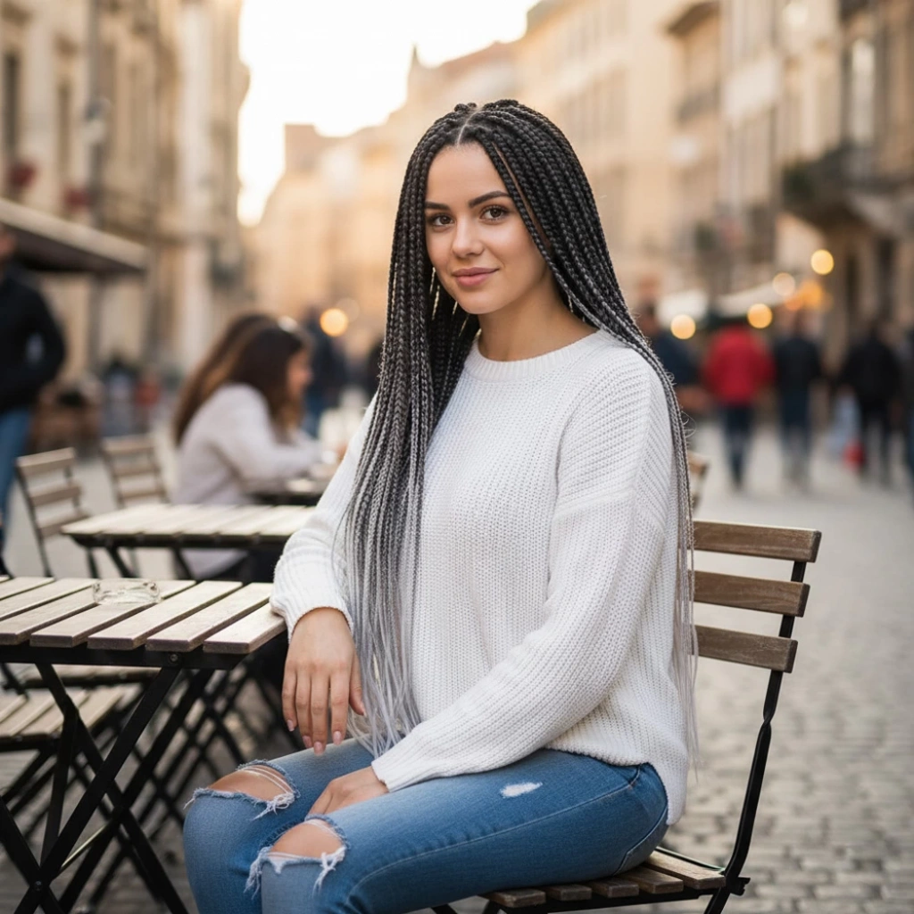 Afrika Örgüsü Ve Rasta İçin Sentetik Ombreli Saç - Siyah / Gri / Beyaz