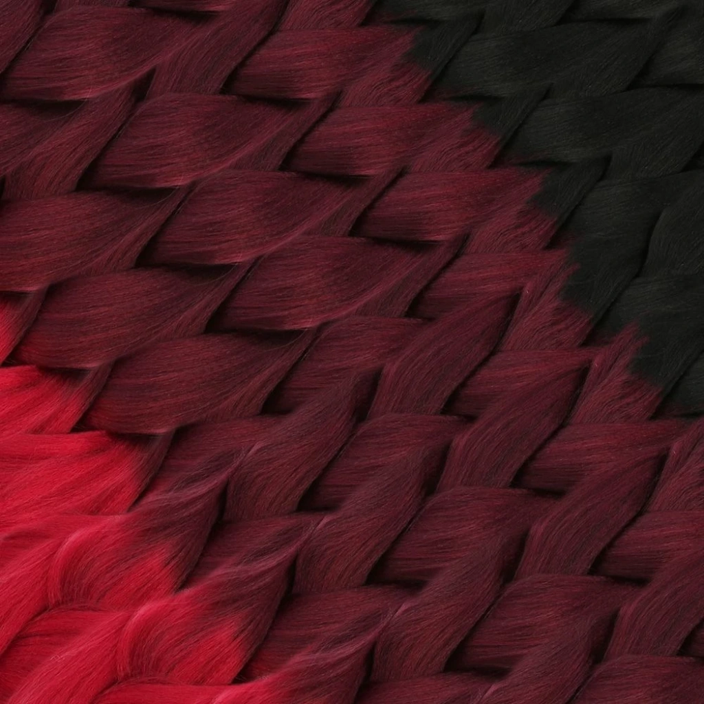 Afrika Örgüsü Ve Rasta İçin Sentetik Ombreli Saç - Siyah / Koyu Kızıl / Açık Kızıl
