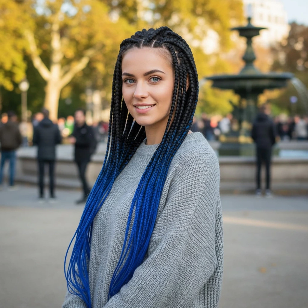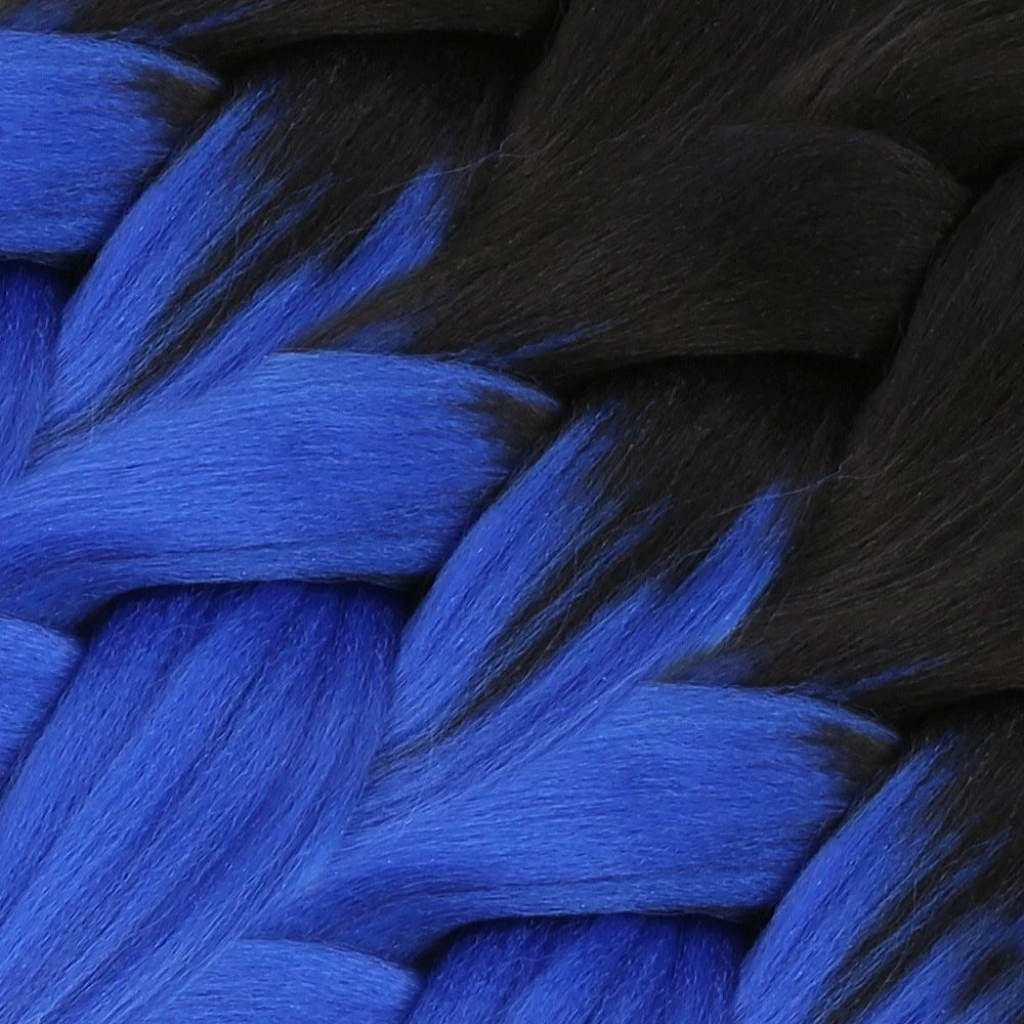 Afrika Örgüsü Ve Rasta İçin Sentetik Ombreli Saç - Siyah / Koyu Mavi Ombreli