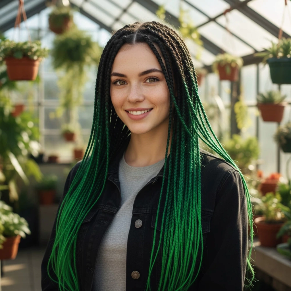 Afrika Örgüsü Ve Rasta İçin Sentetik Ombreli Saç - Siyah / Zümrüt Yeşili