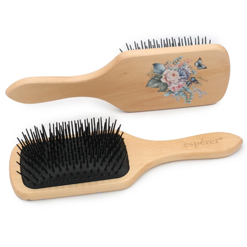 Ahşap, Topuzsuz ve Baskılı Saç Açma Fırçası - JT8586-06