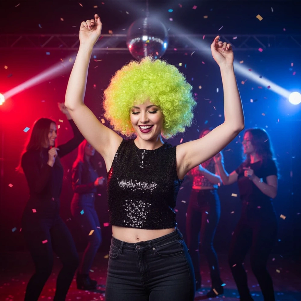 Animasyon, parti ve palyaço peruğudur, renklidir.