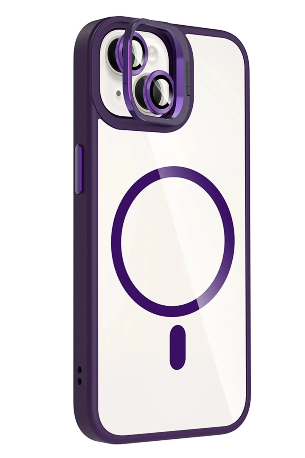 Apple iPhone 13 Remim Lensli Magsafe Standlı Kapak - Derin Mor