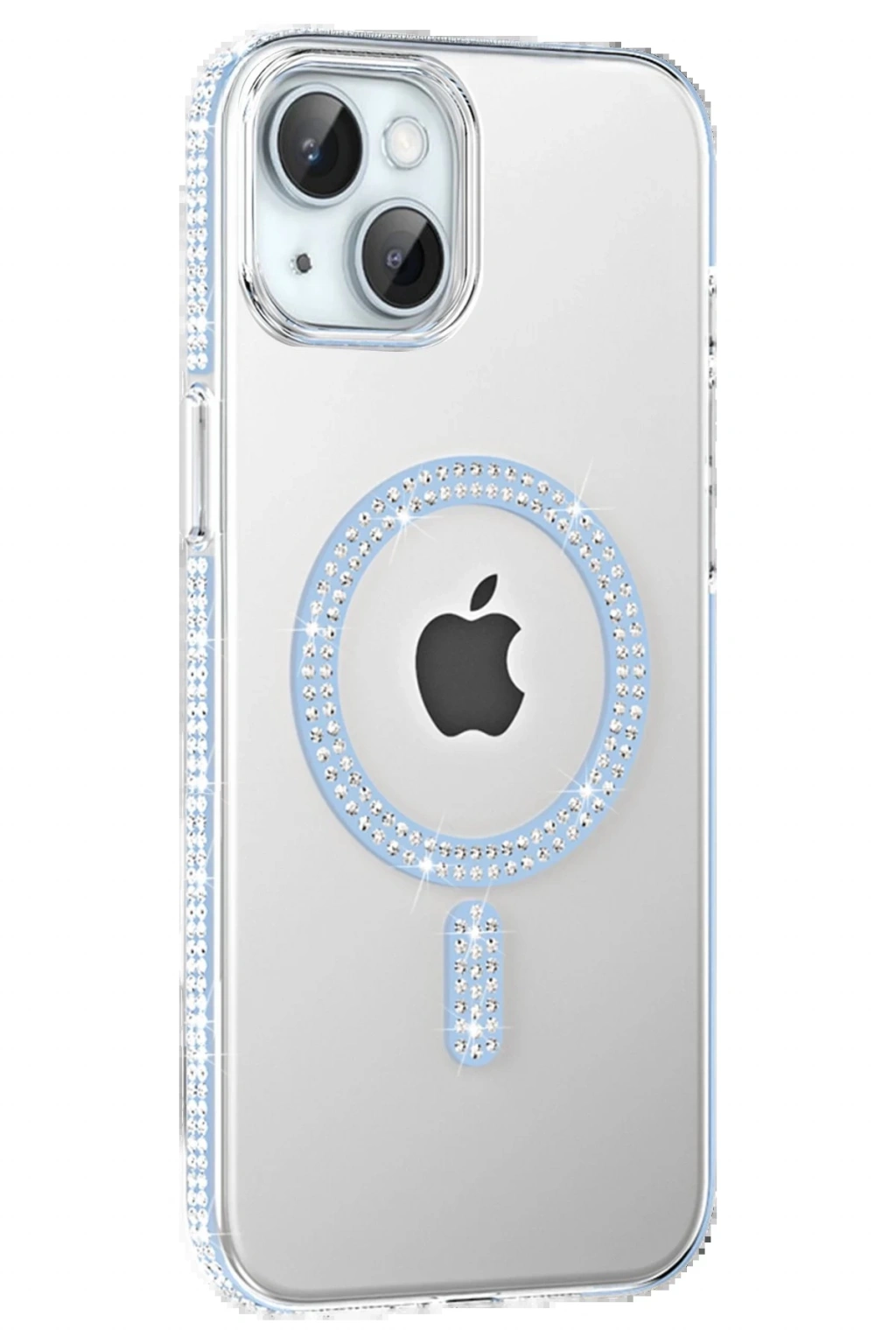 Apple iPhone 14 Move Taşlı Magsafe Kapak - Mavi