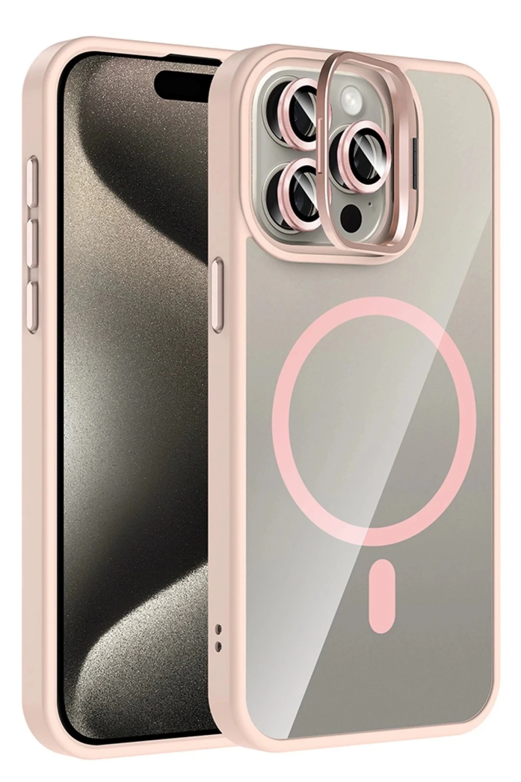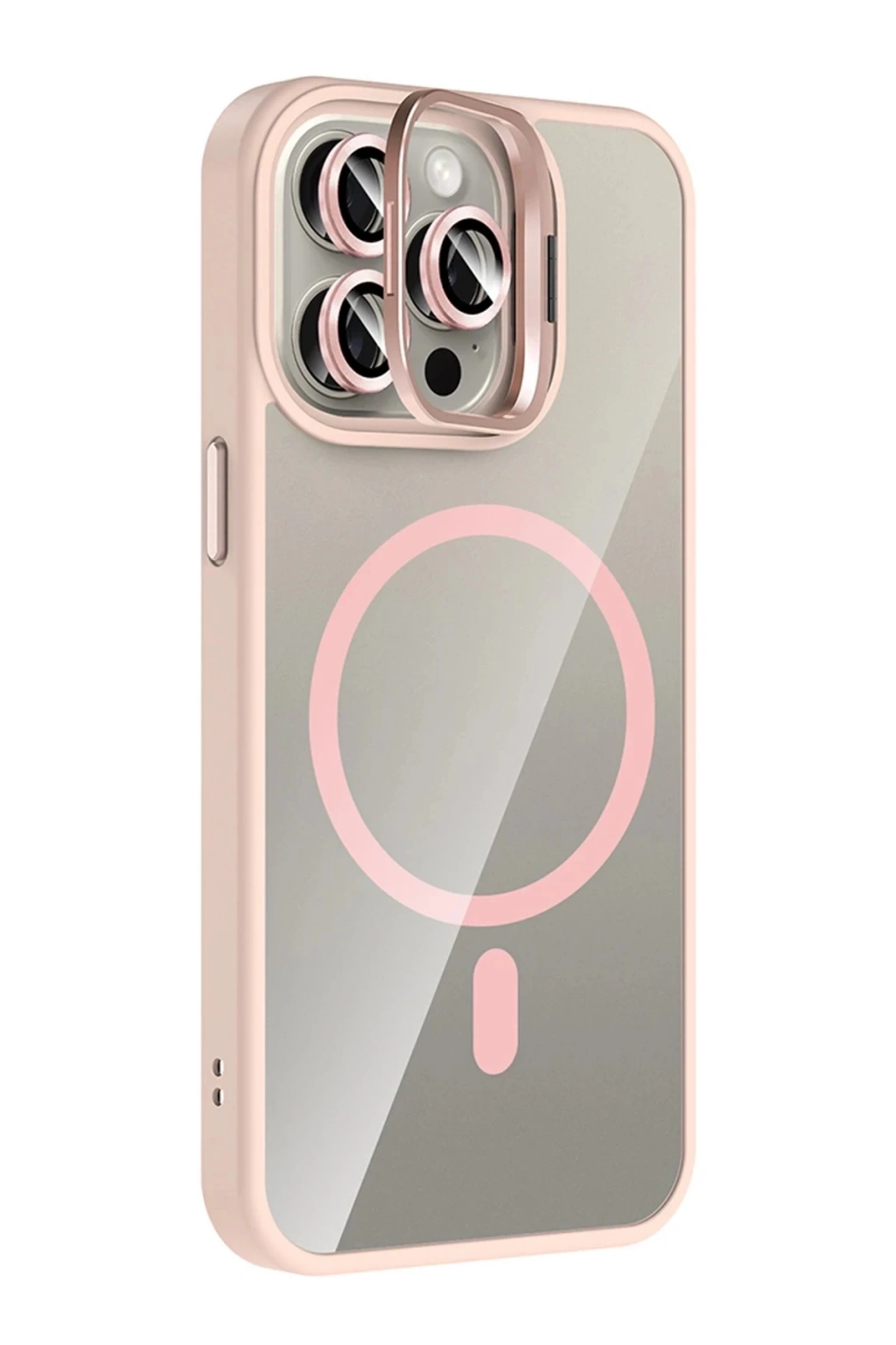 Apple iPhone 14 Pro Max Remim Lensli Magsafe Standlı Kapak - Pembe