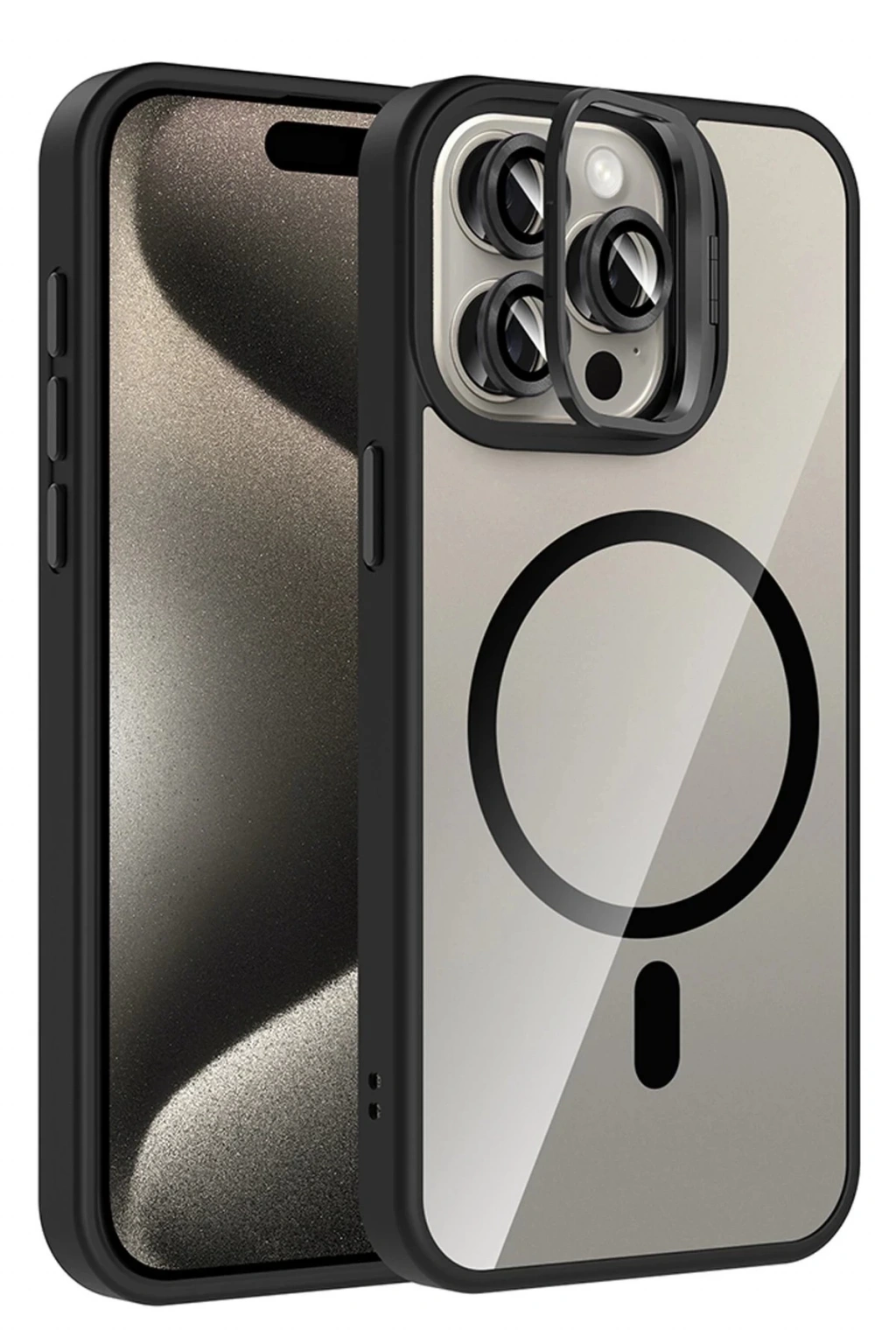 Apple iPhone 14 Pro Max Remim Lensli Magsafe Standlı Kapak - Siyah