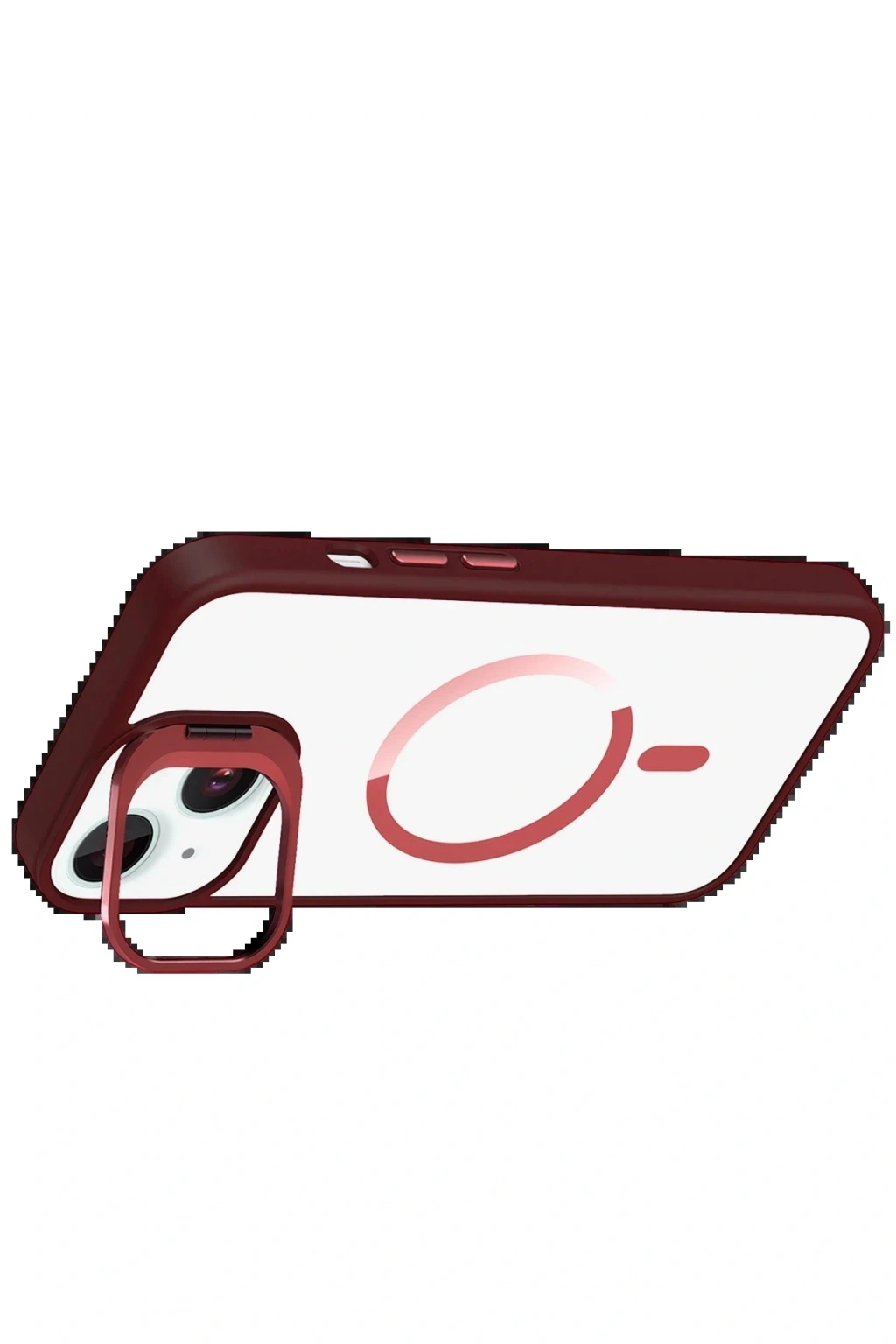 Apple iPhone 14 Remim Lensli Magsafe Standlı Kapak - Bordo