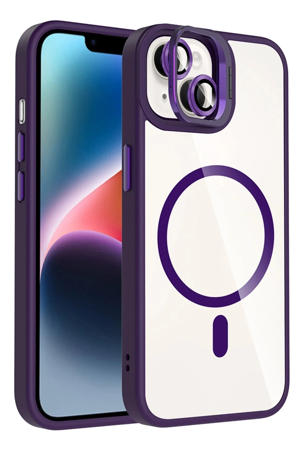 Apple iPhone 14 Remim Lensli Magsafe Standlı Kapak - Derin Mor