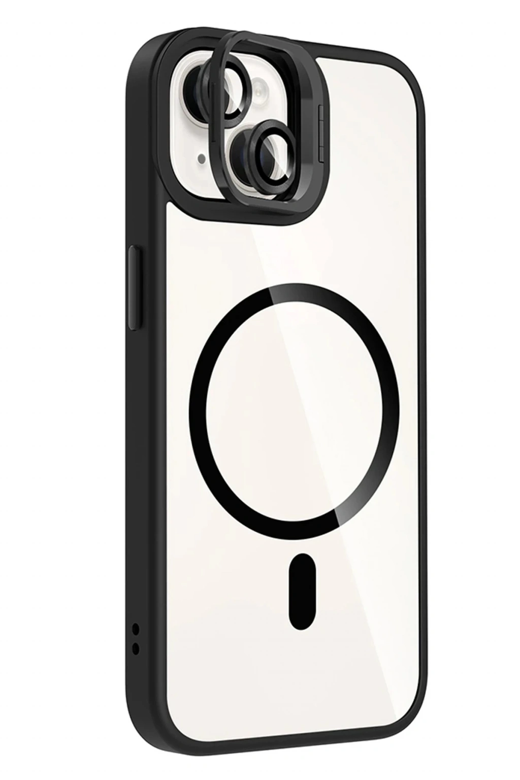 Apple iPhone 15 Plus Remim Lensli Magsafe Standlı Kapak - Siyah