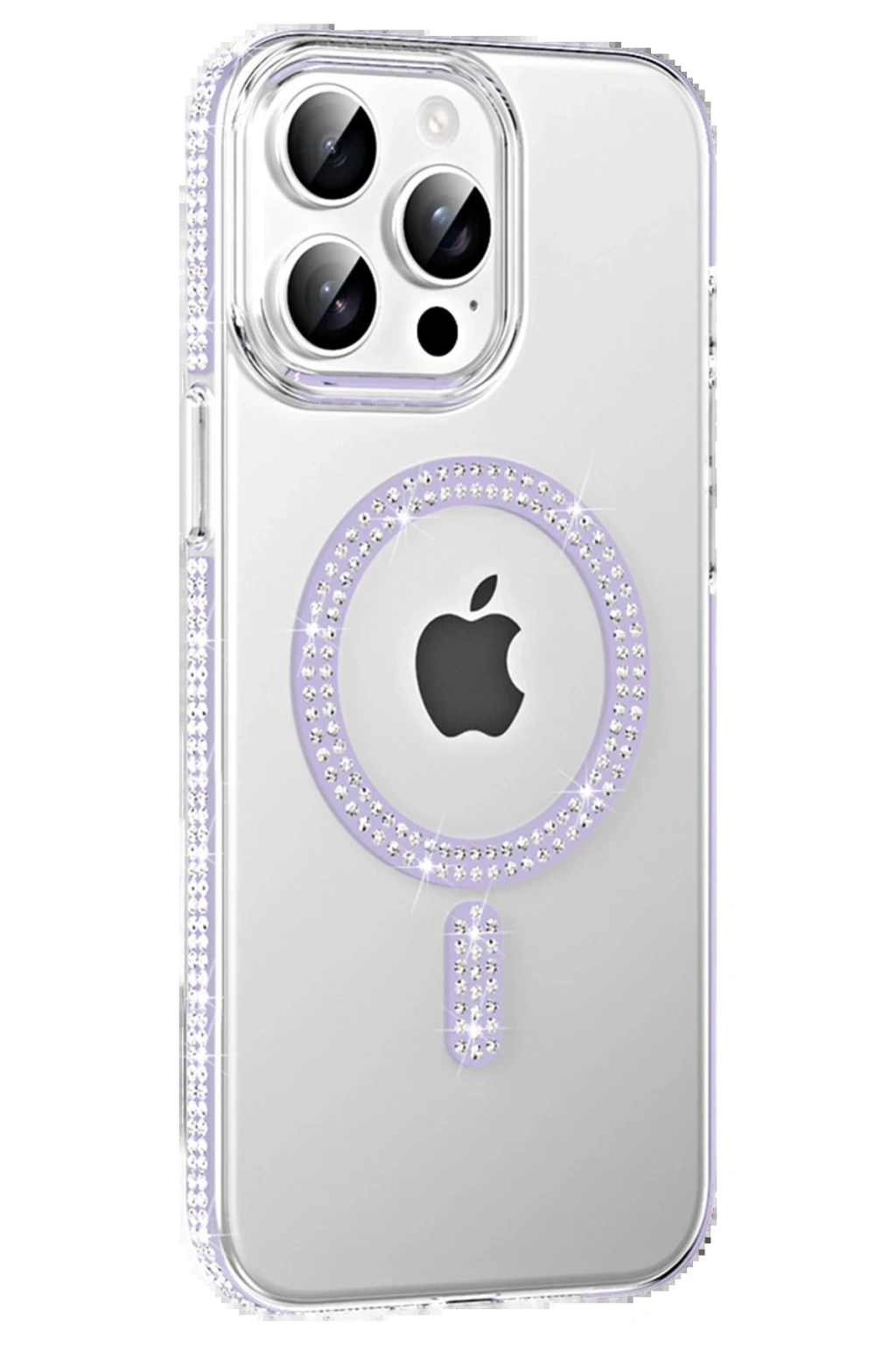 Apple iPhone 15 Pro Move Taşlı Magsafe Kapak - Lila
