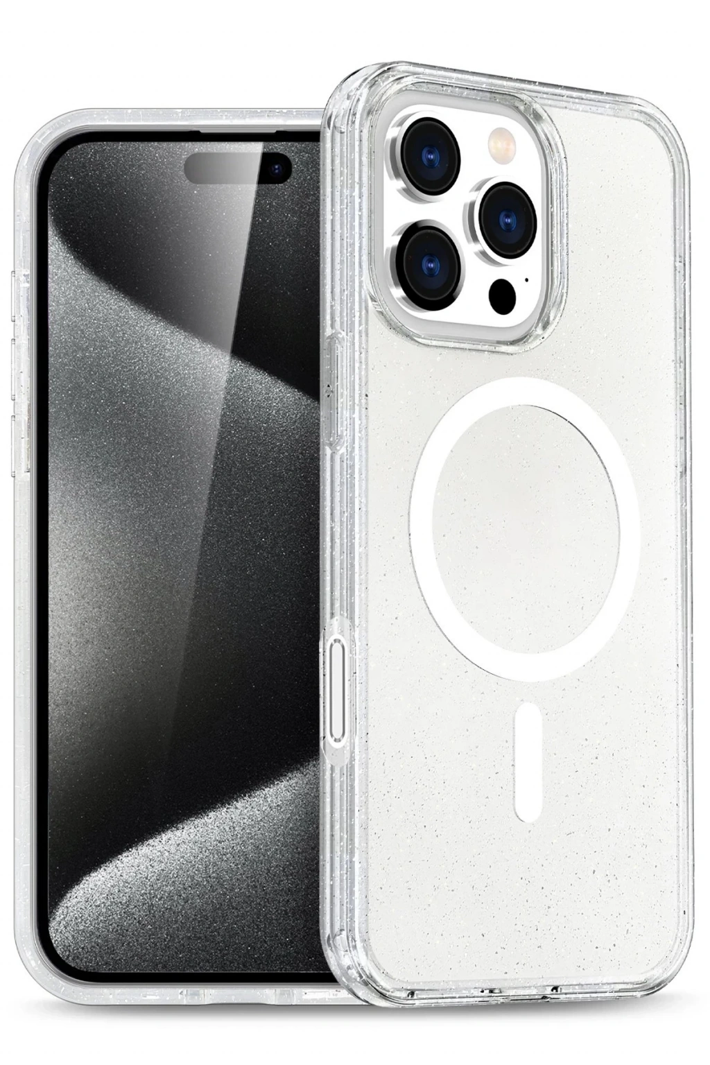 Glow MagSafe Kapak, telefonunuzu her açıdan öne çıkaran parlak ve şık bir tasarıma sahiptir. Simli arka planı, ışık altında parlayarak cihazınıza göz alıcı bir görünüm kazandırır.