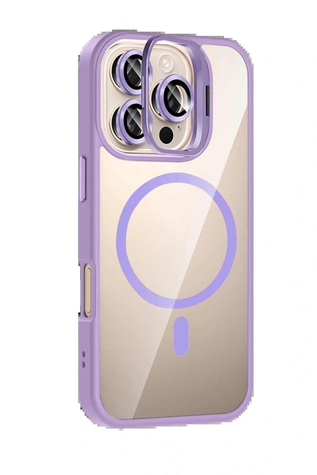 Apple iPhone 16 Pro Remim Lensli Magsafe Standlı Kapak - Lila