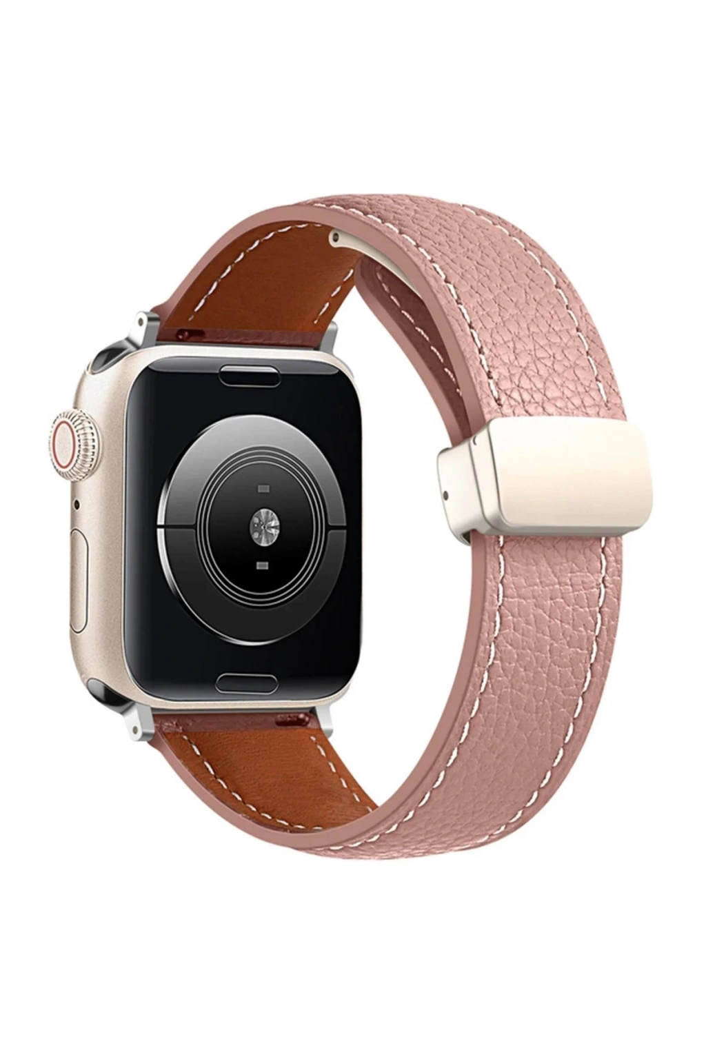 Apple Watch 38mm KR414 Daks Deri Kordon - Pembe