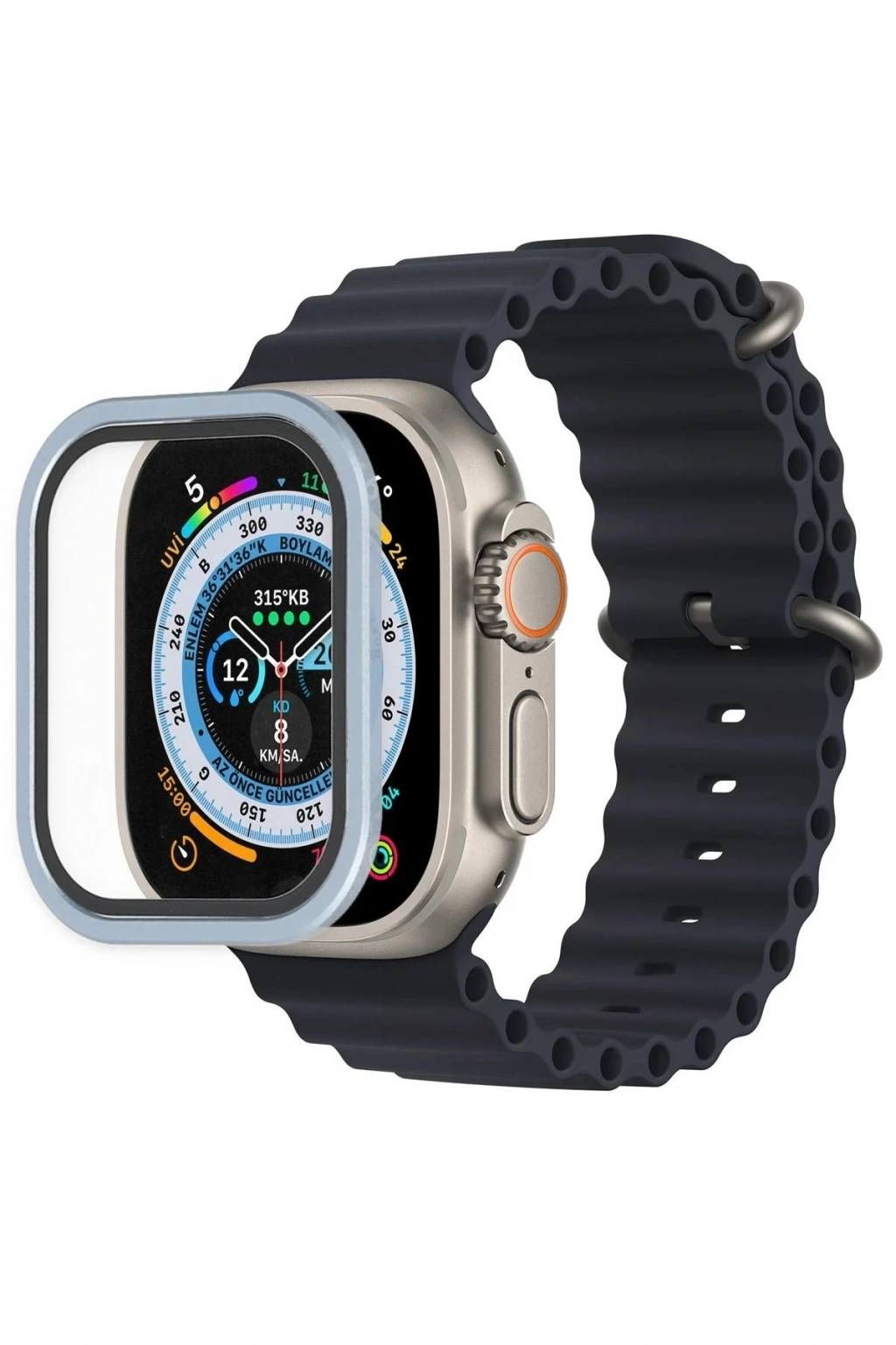 Apple Watch Ultra 49mm Alüminyum Kasa Cam Ekran Koruyucu - Mavi