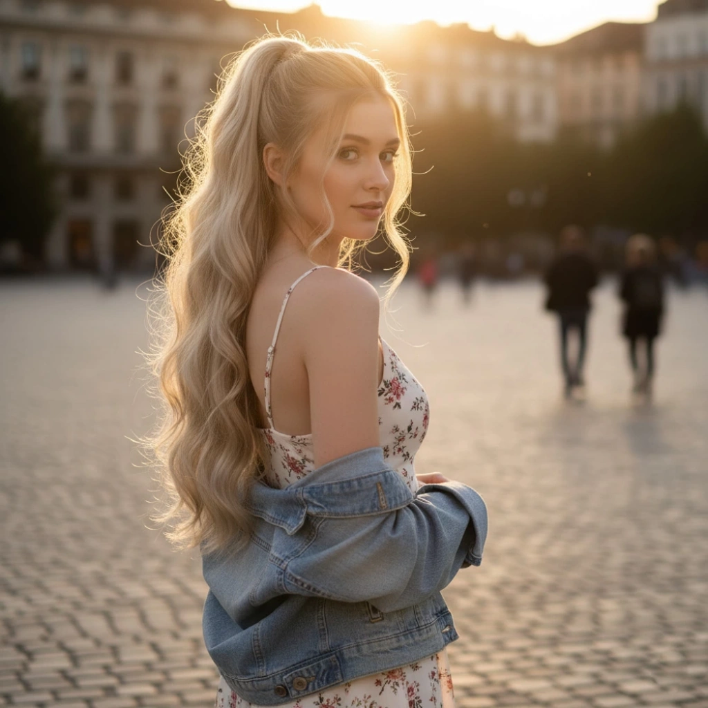 Tokalı Kabarık Dalgalı At Kuyruğu - Kumral Beyaz Platin Röfleli
