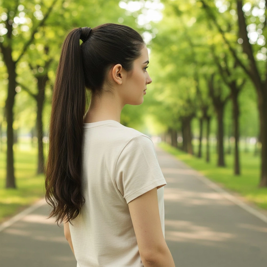 Bağlamalı Düz At Kuyruğu - Açık Kahve