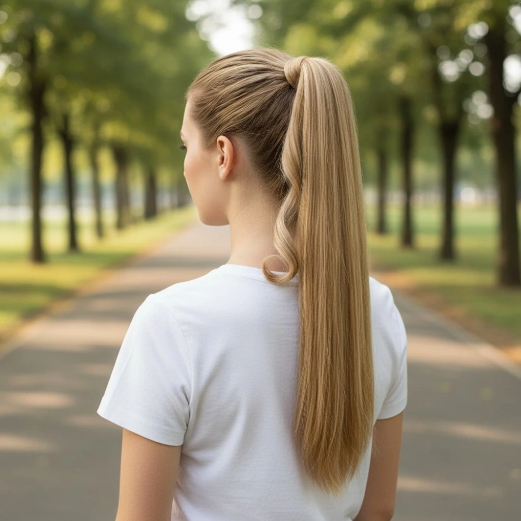 Lastik Tokalı At Kuyruğu Su Dalgalı - Kumral / Platin Ombre