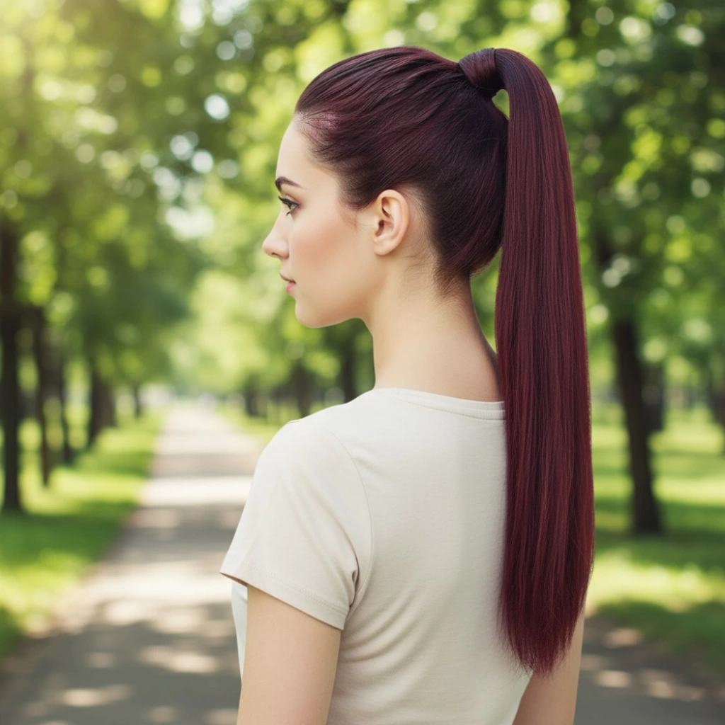 Bağlamalı Düz At Kuyruğu - Koyu Kızıl