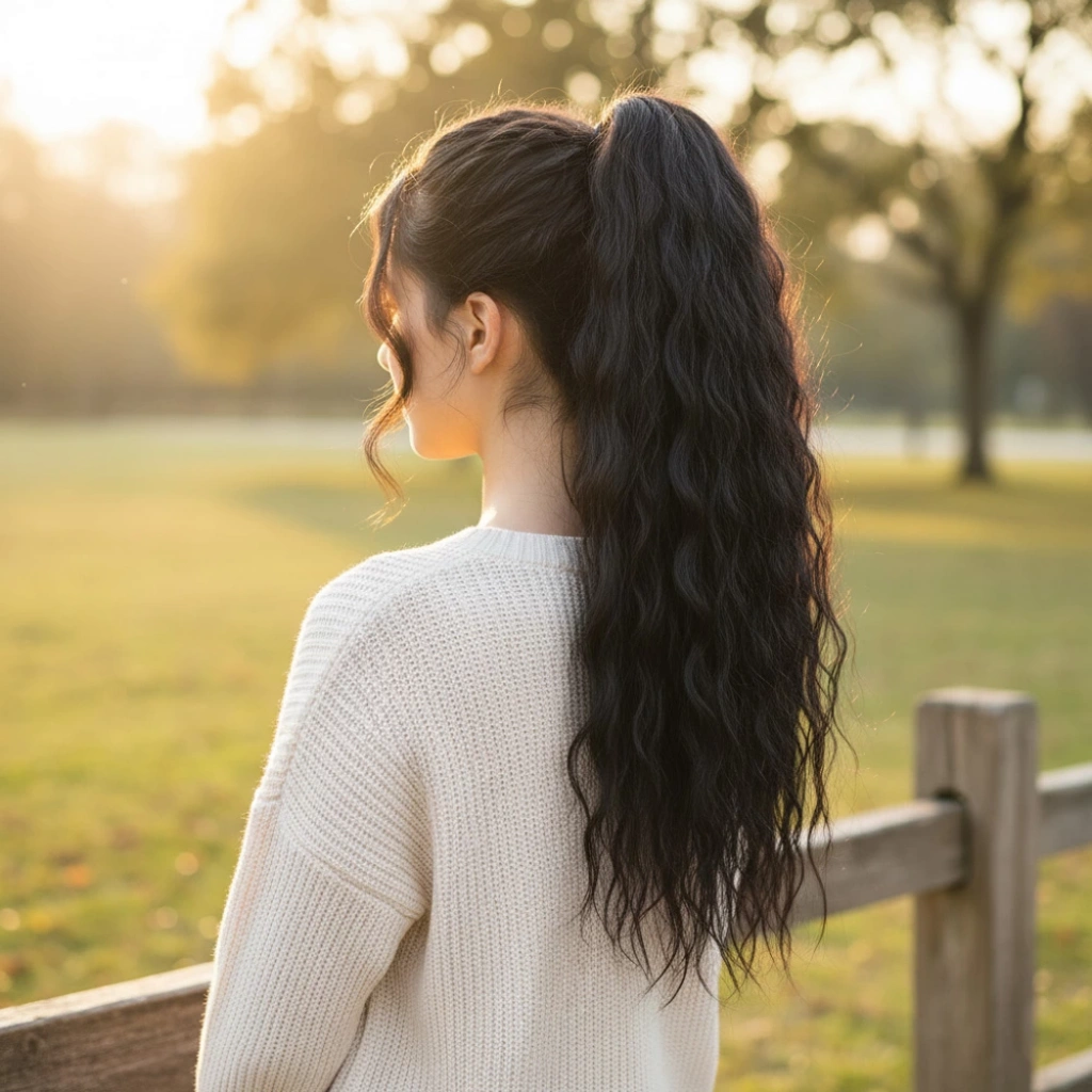 Lastik Tokalı At Kuyruğu Su Dalgalı - Kumral / Platin Ombre