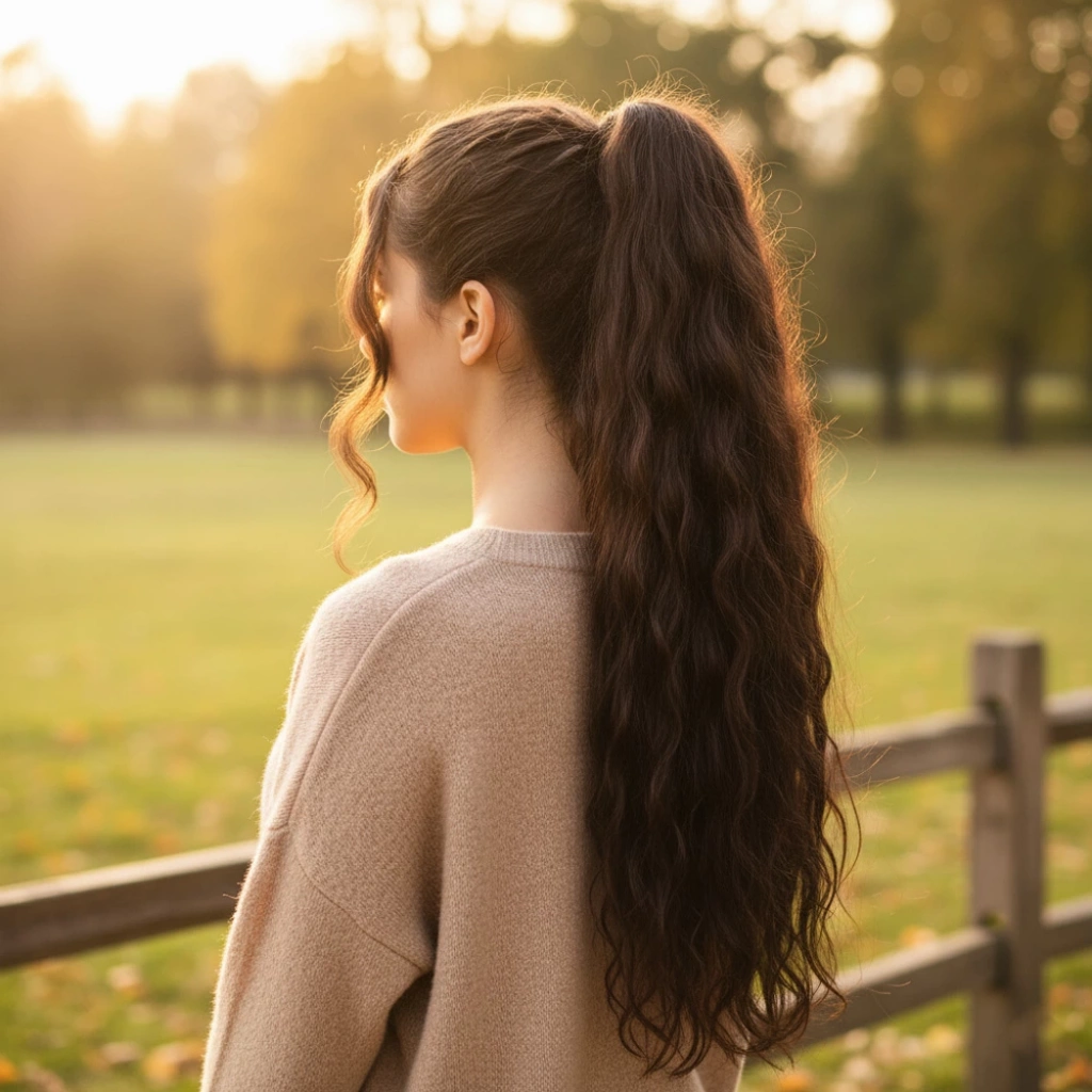 Bağlamalı Kabarık Dalgalı At Kuyruğu - Koyu Kahve