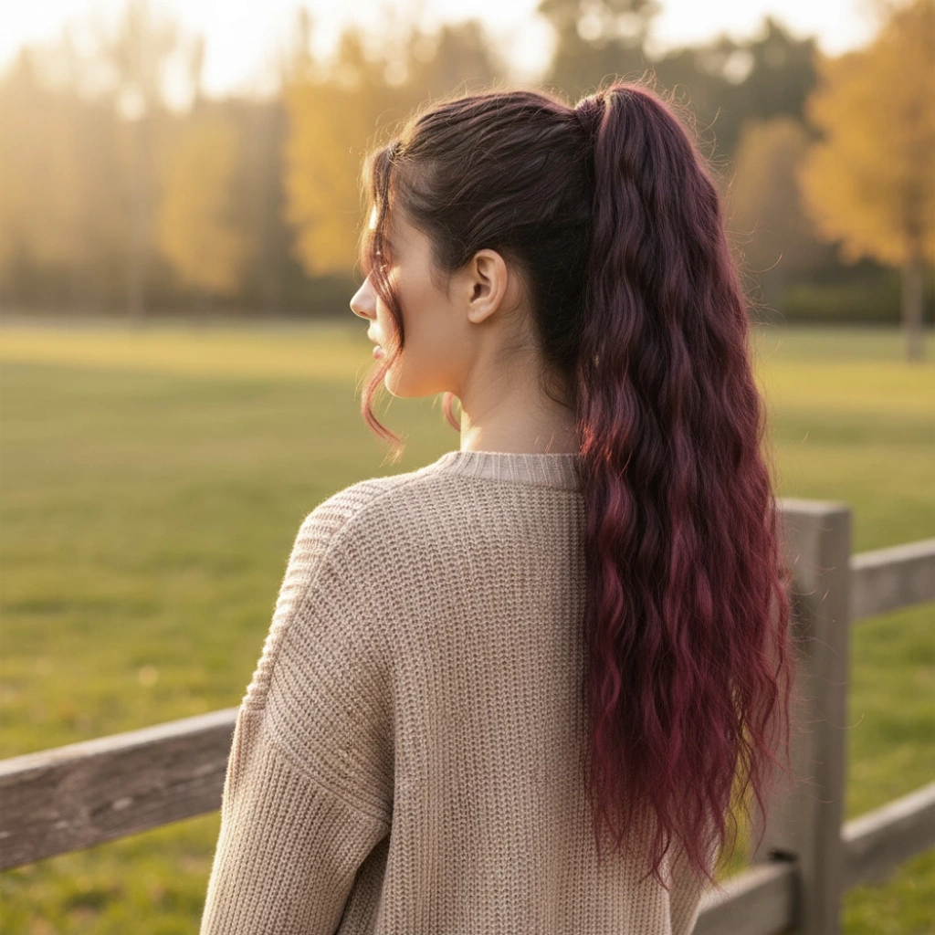 Bağlamalı Kabarık Dalgalı At Kuyruğu - Koyu Kızıl