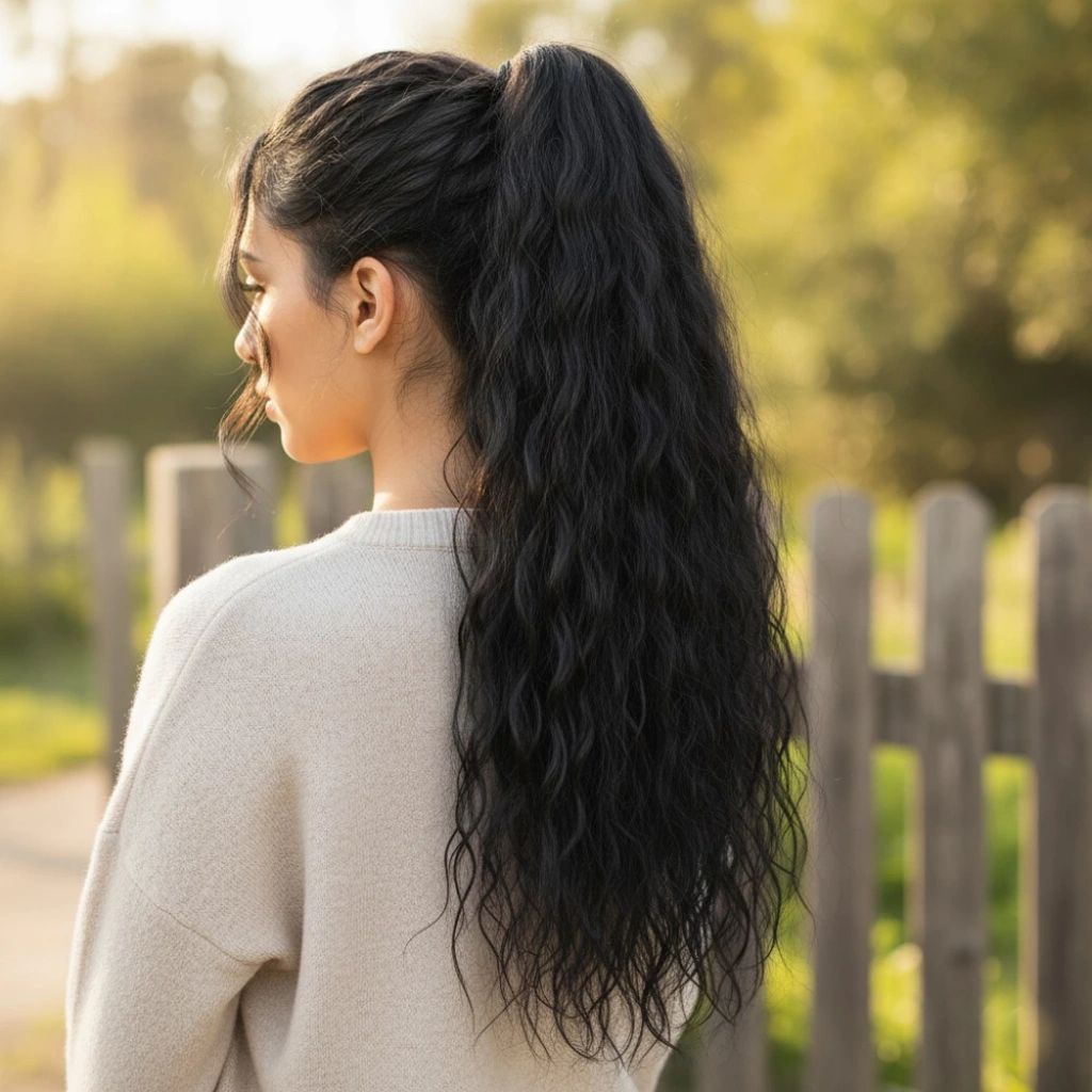 Bağlamalı Kabarık Dalgalı At Kuyruğu - Siyah