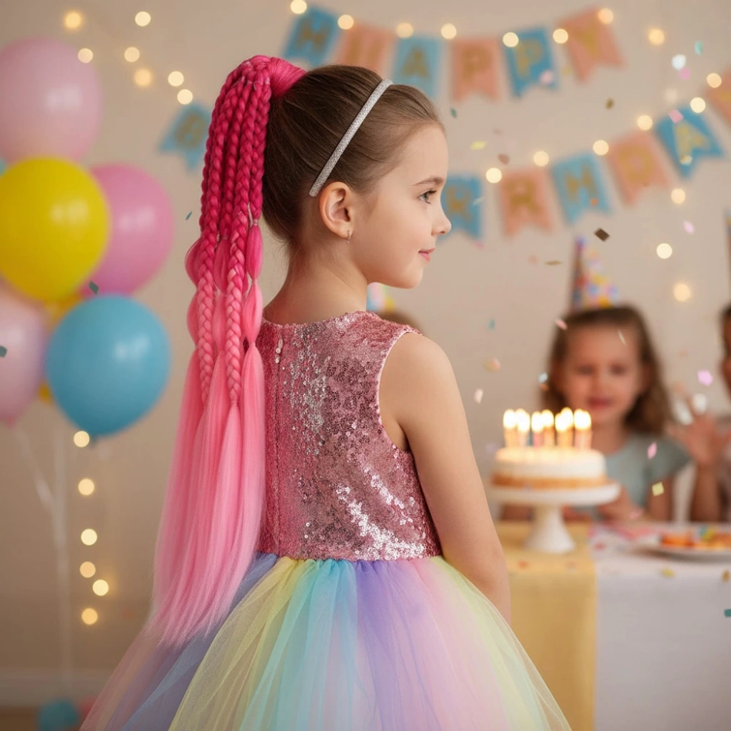 Örgülü Simli Aksesuarlı Lastikli At Kuyruğu - ACM27