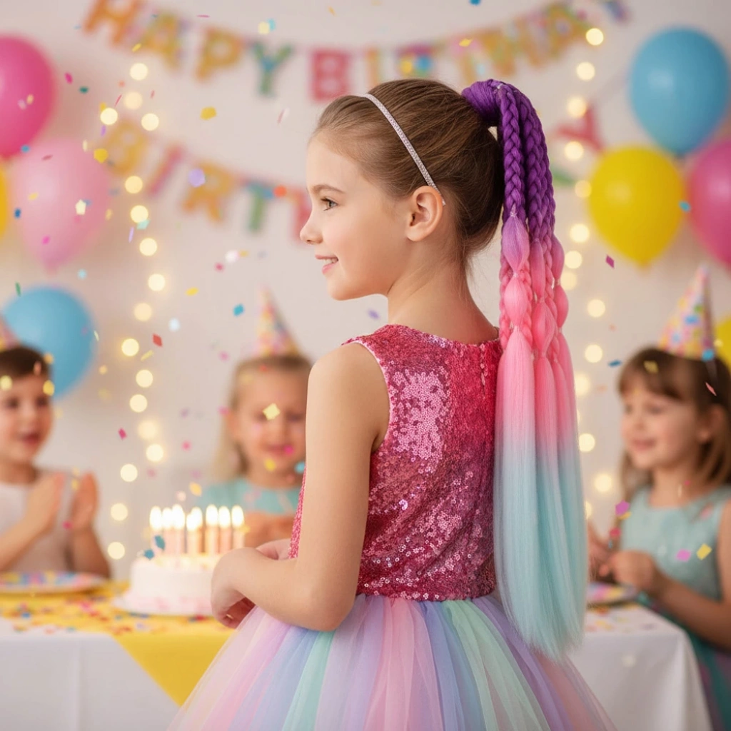 Örgülü Simli Aksesuarlı Lastikli At Kuyruğu - ACM27