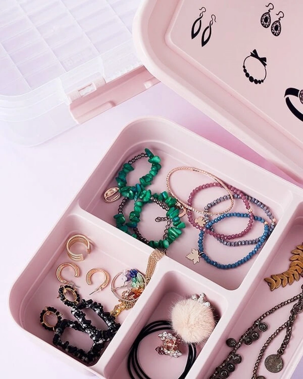 Bijuteri Mücevher Kutusu - Çok Amaçlı Bölmeli Takı Saklama Kutusu