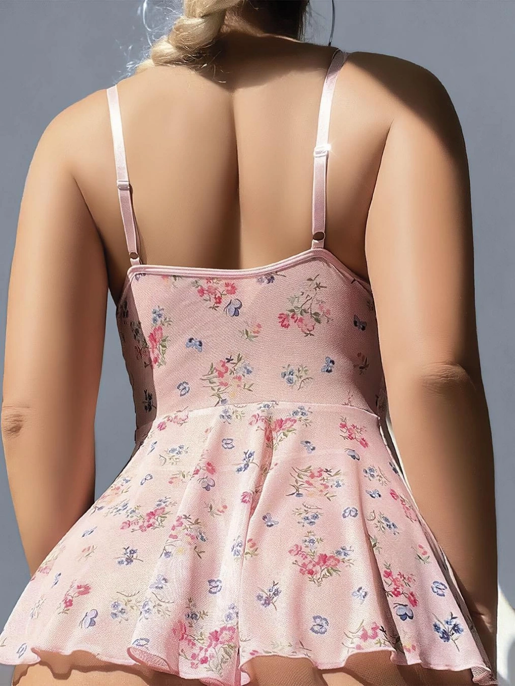 Çiçek desenli pembe fantezi gecelik