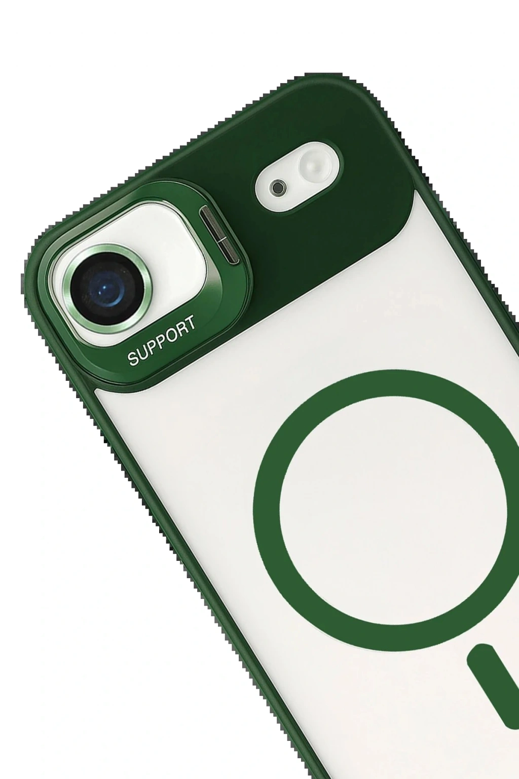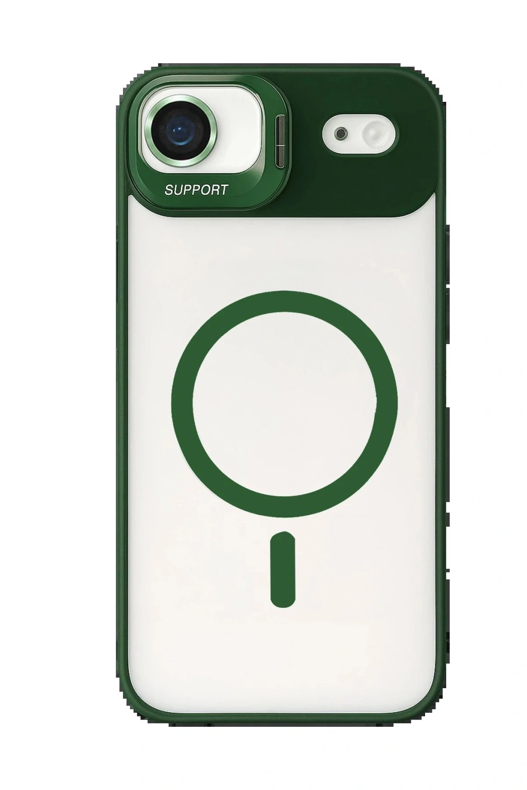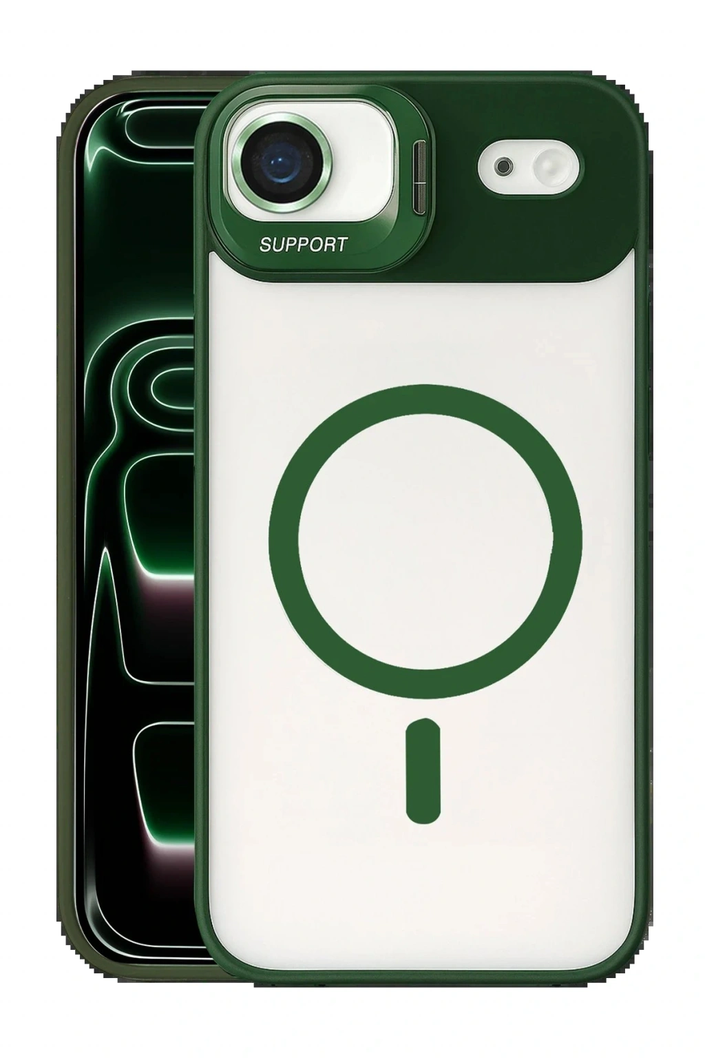 Apple iPhone 17 Air Remim Lensli Magsafe Standlı Kapak - Koyu Yeşil