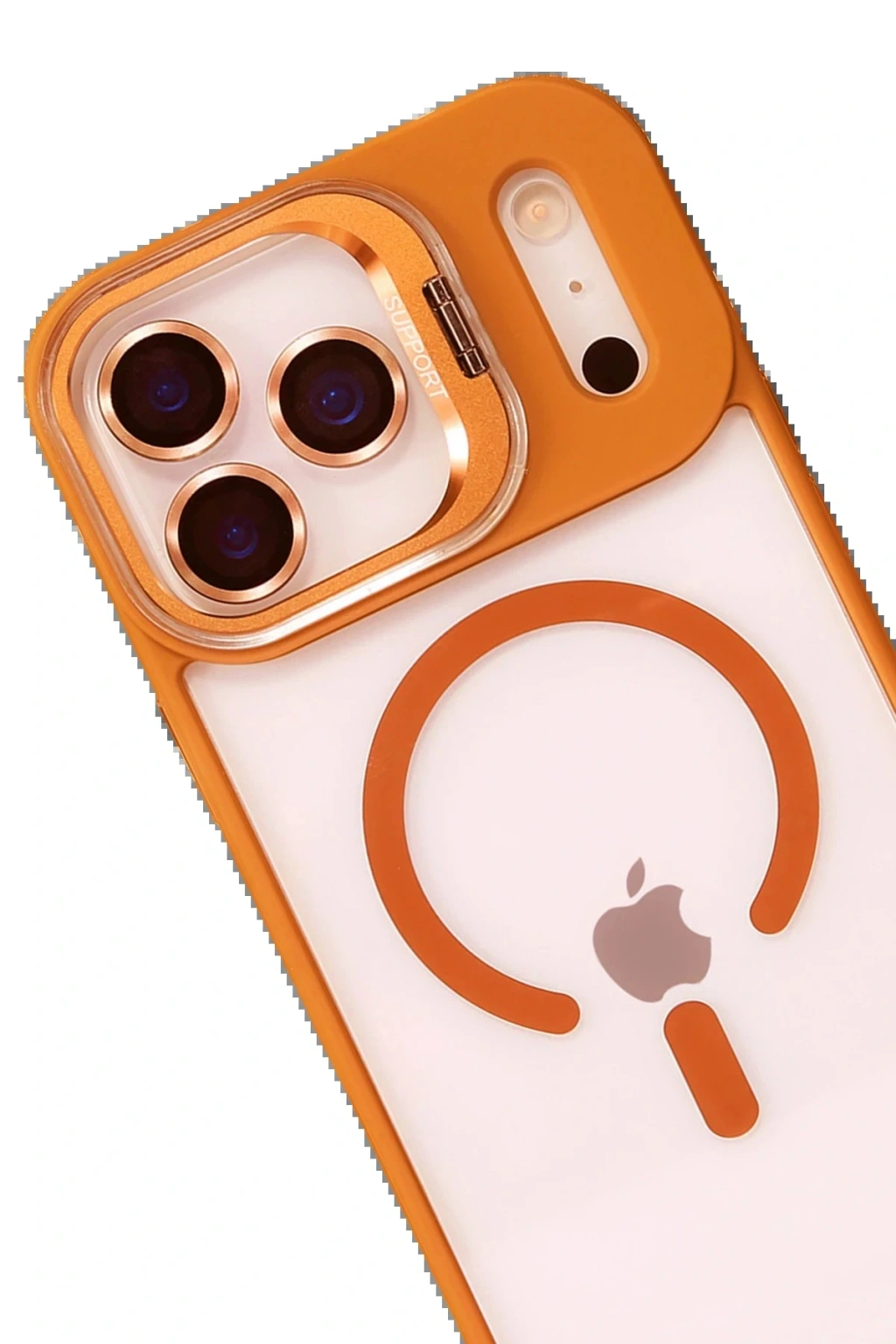 Apple iPhone 17 Pro Max Remim Lensli Magsafe Standlı Kapak - Turuncu