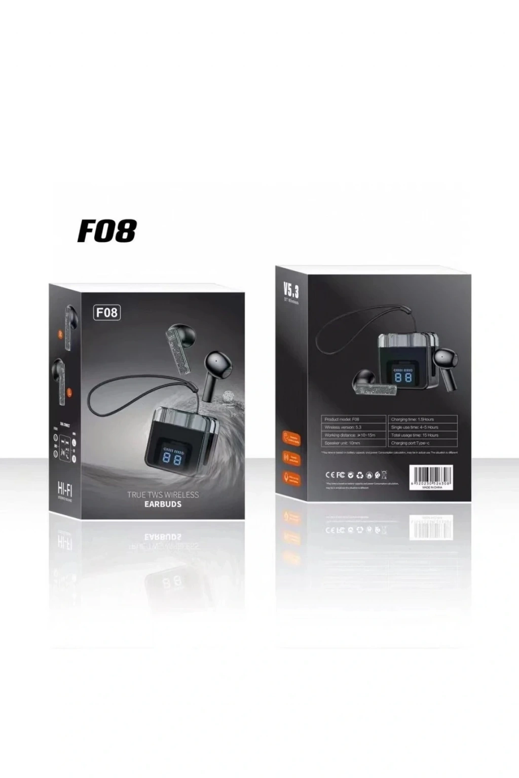 F08 Dijital Şarj Göstergeli TWS Bluetooth Kulaklık - Siyah