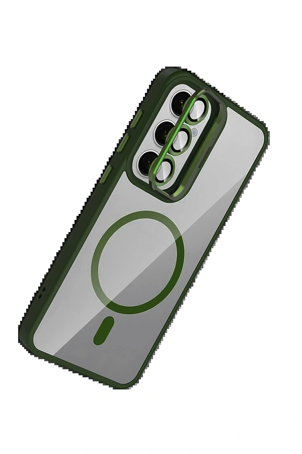 Samsung Galaxy S25 Remim Lensli Magsafe Standlı Kapak - Koyu Yeşil