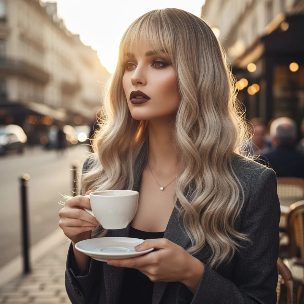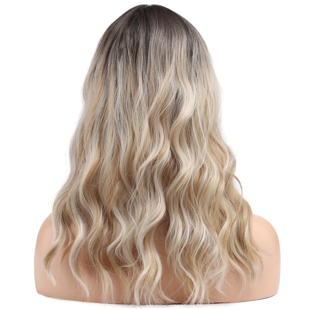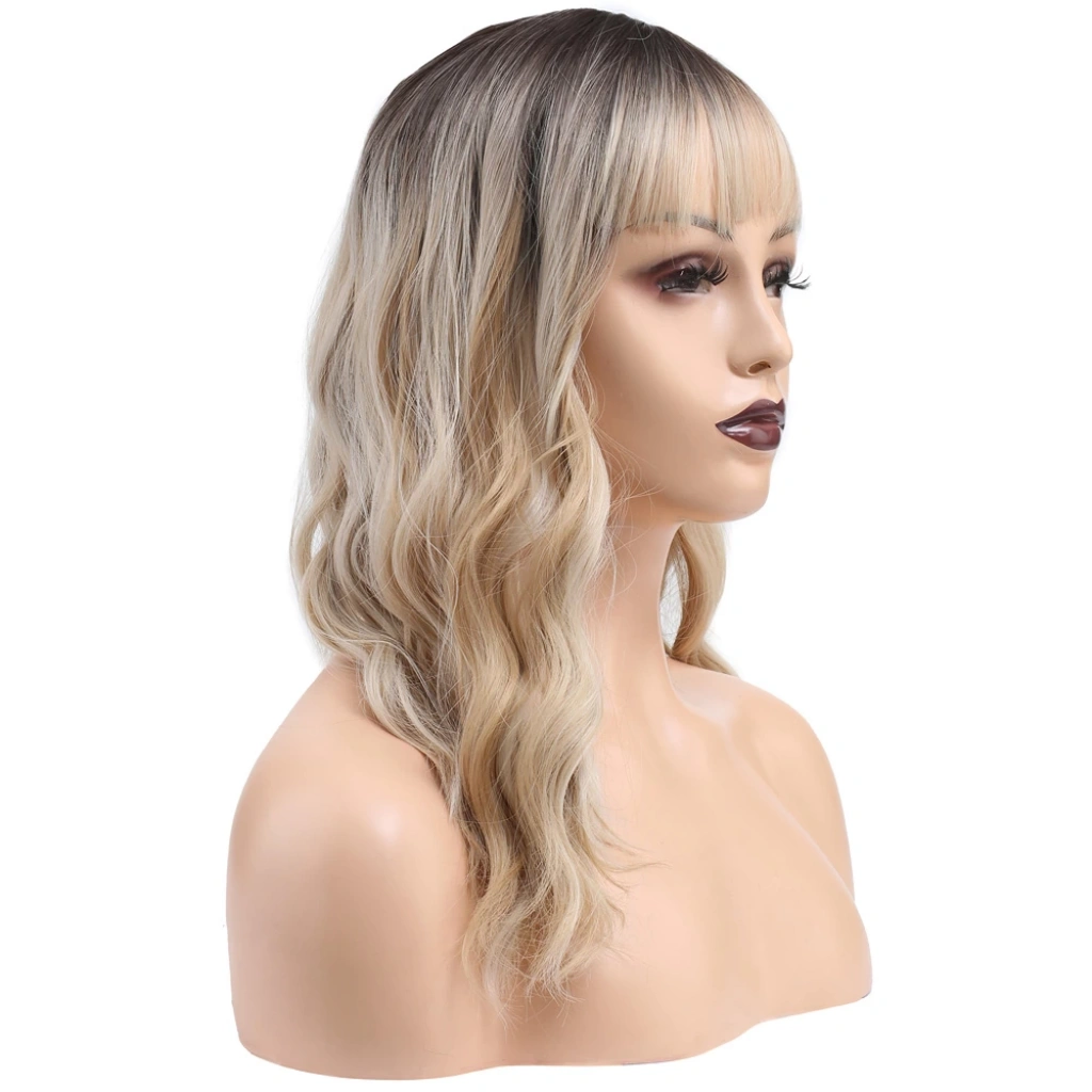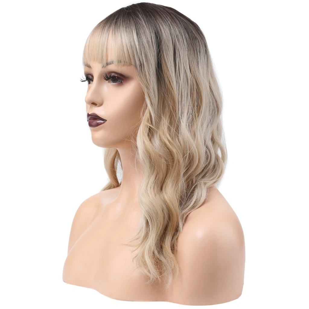 Dalgalı Kısa Perçemli Fiber Sentetik Peruk - Kahve / Platin Ombre ve Röfleli