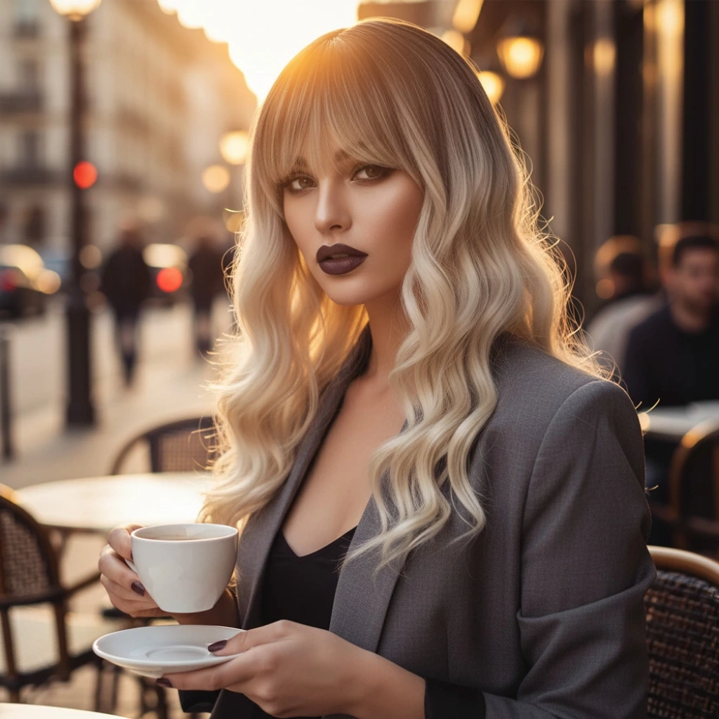Dalgalı Perçemli Uzun Fiber Sentetik Peruk - Platin