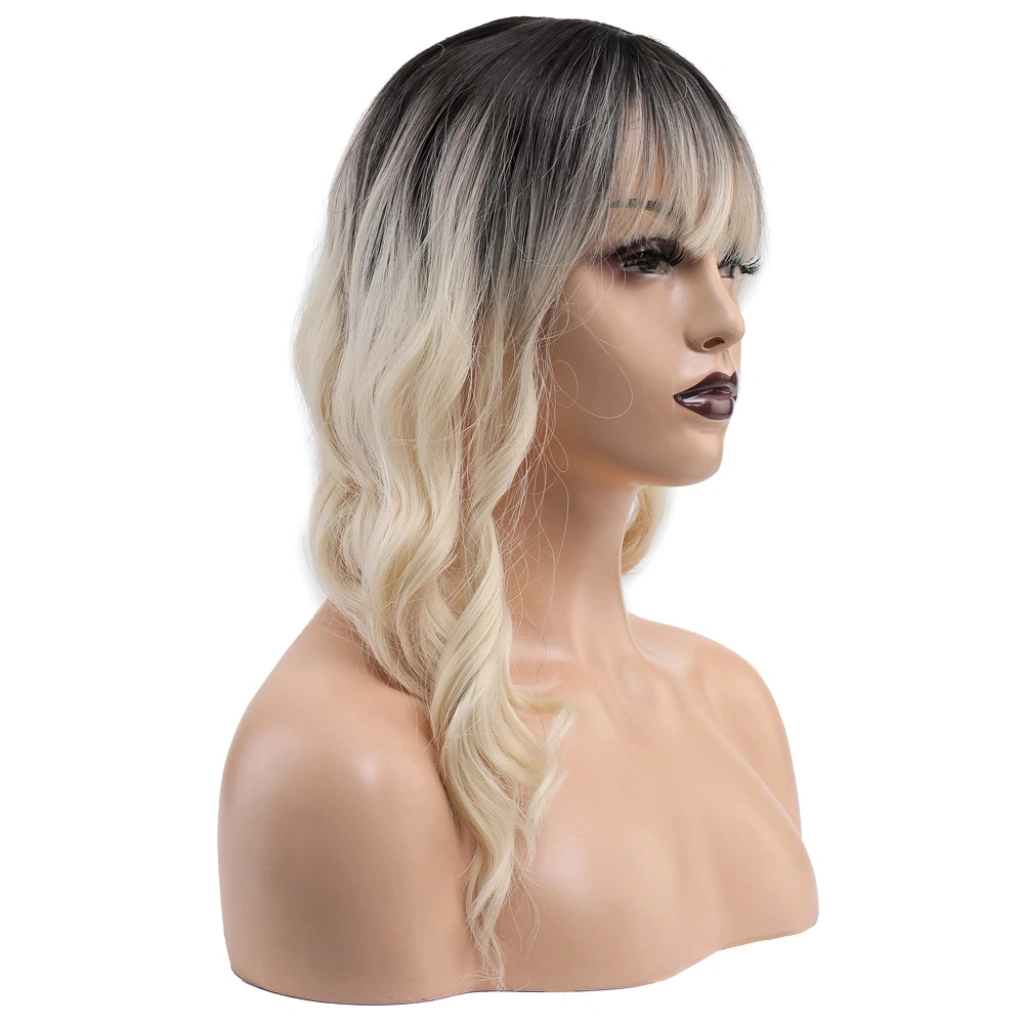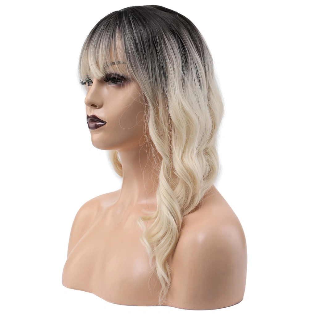 Dalgalı Perçemli Fiber Sentetik Orta Boy Peruk - Balköpüğü Platin Röfleli