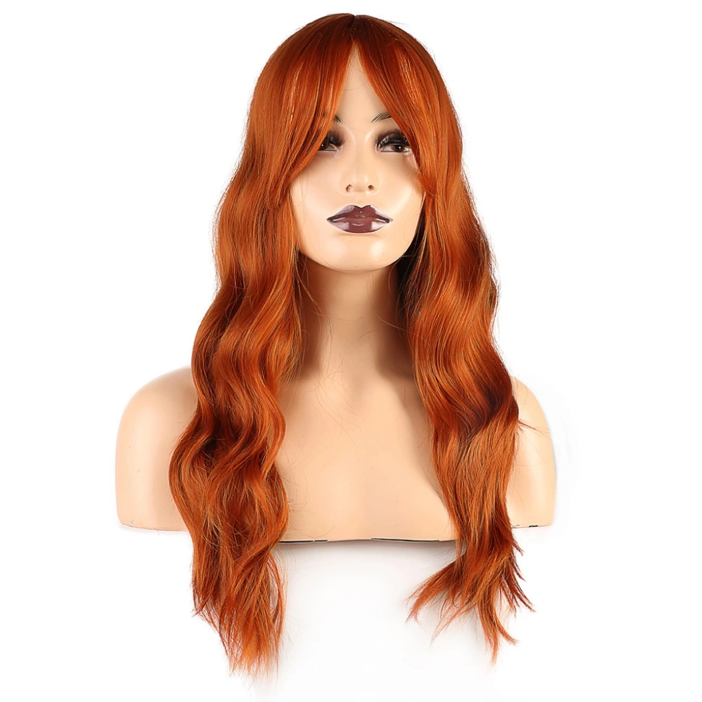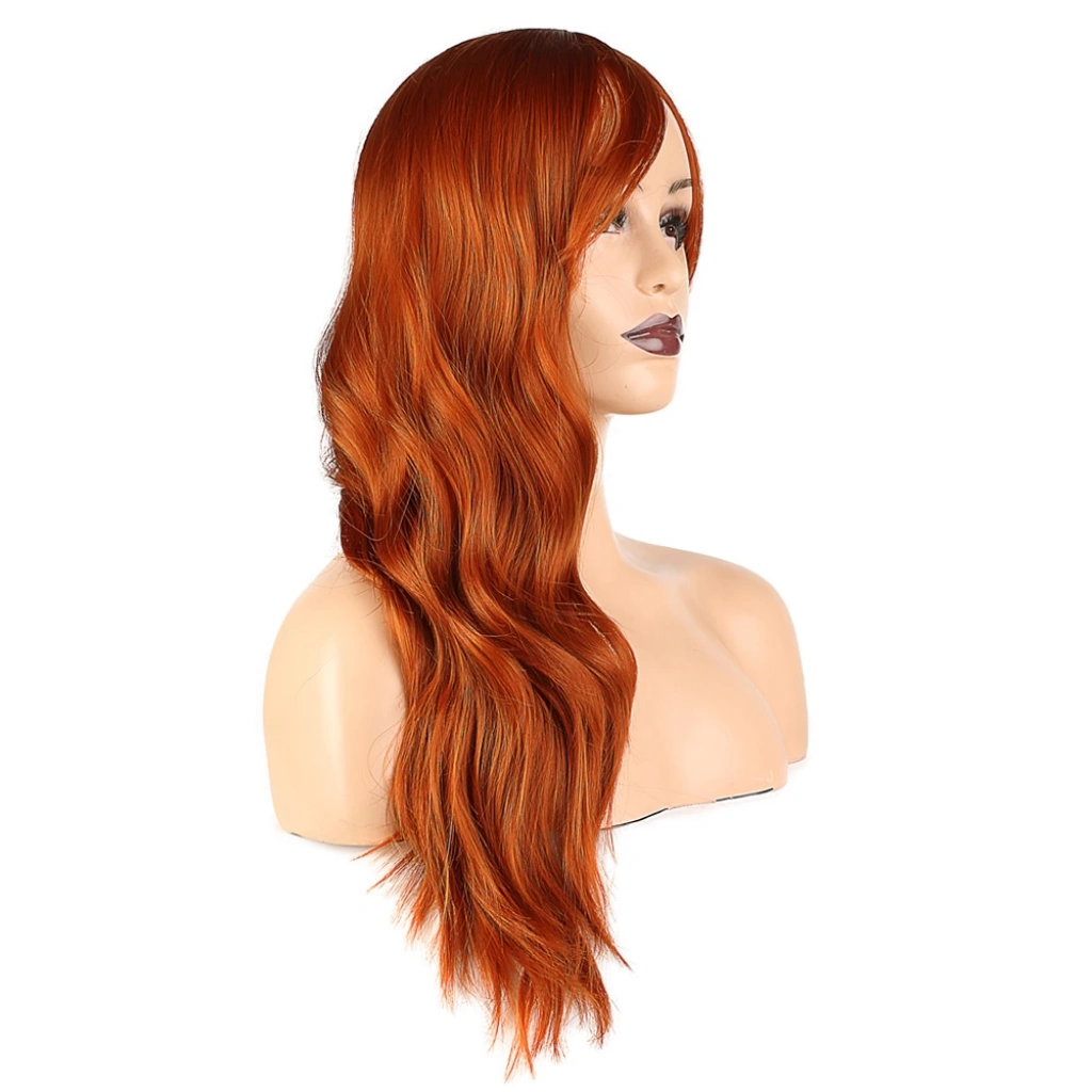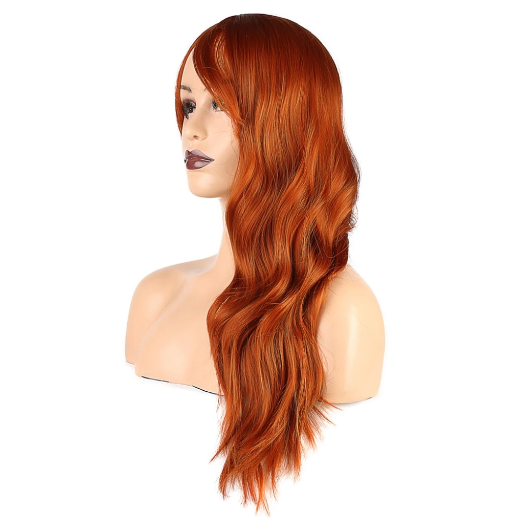 Dalgalı Perçemli Uzun Fiber Sentetik Peruk - Bakır