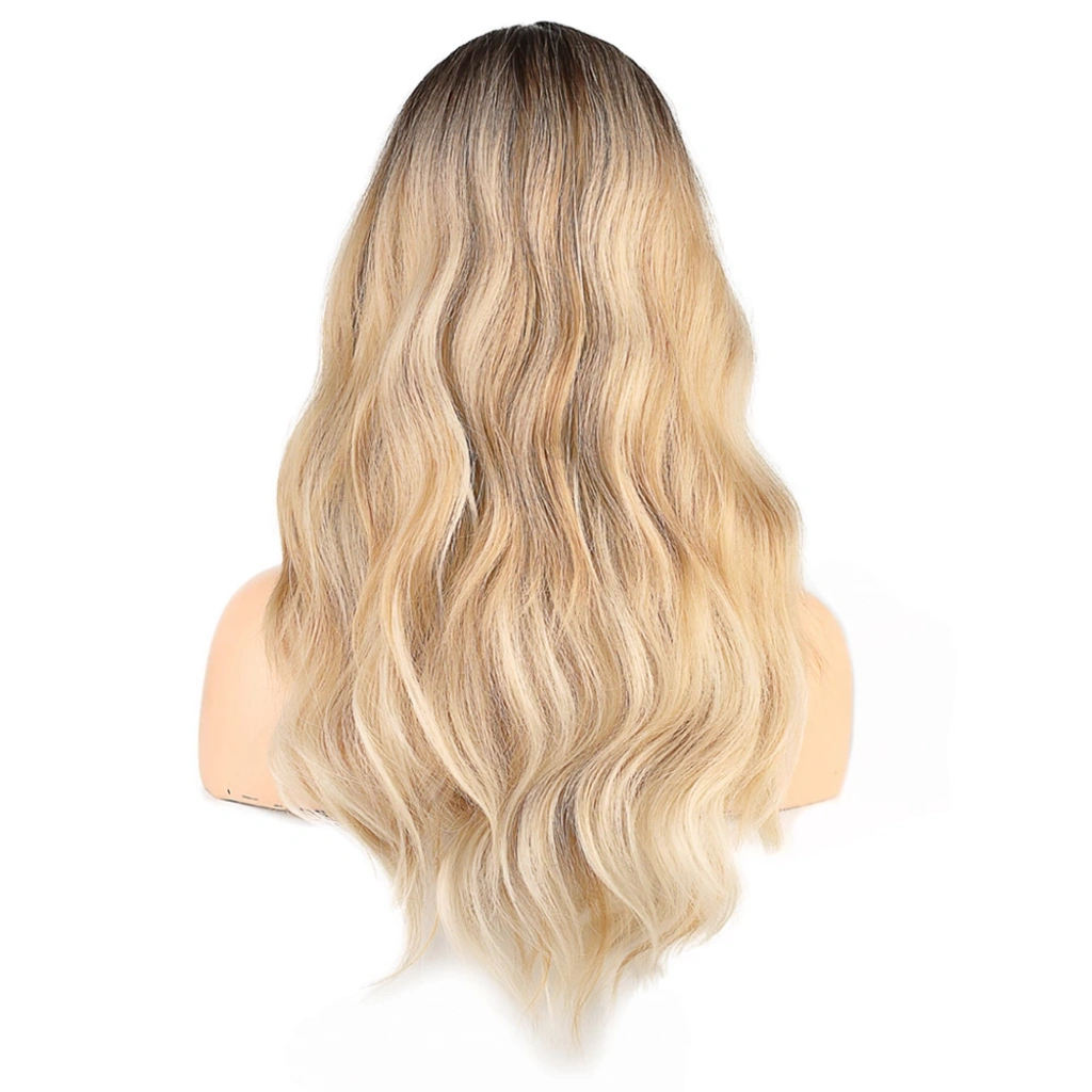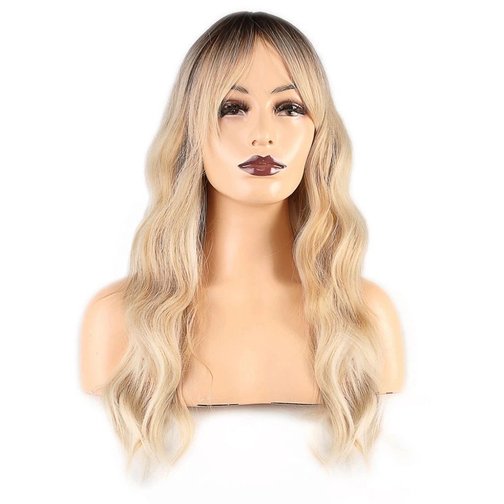 Dalgalı Perçemli Uzun Fiber Sentetik Peruk - Platin
