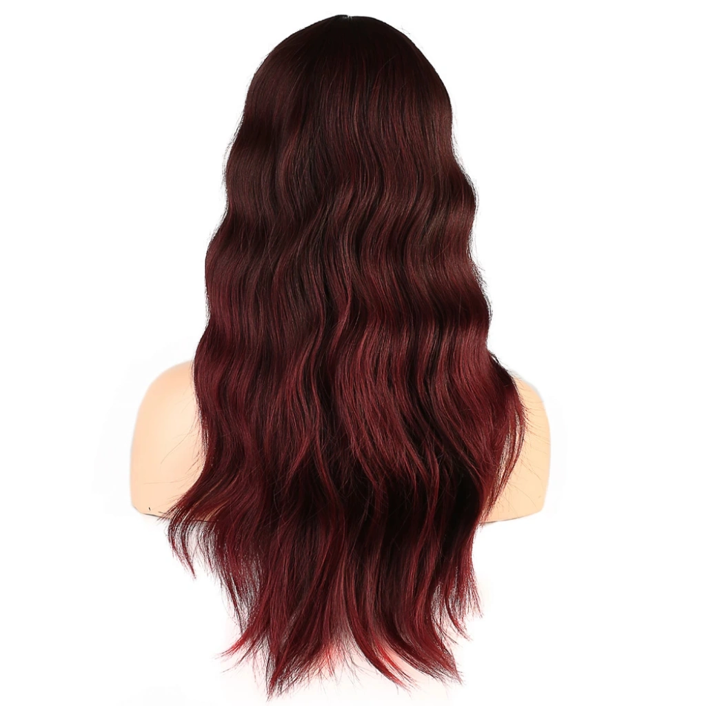 Dalgalı Perçemli Uzun Fiber Sentetik Peruk - Kızıl
